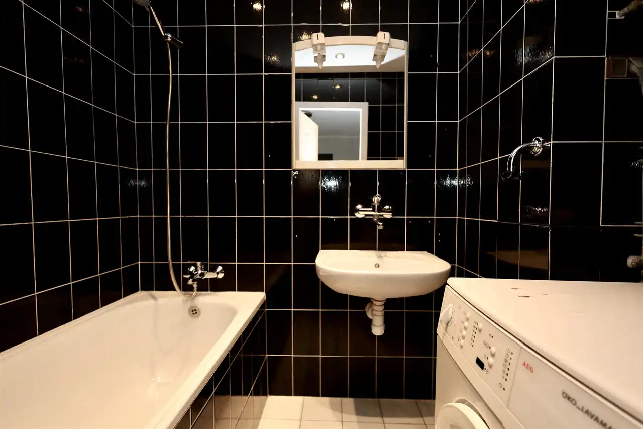 Łazienka z wanną i miejscem na pralkę