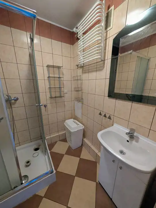 - łazienka z kabiną i miejscem na pralkę,