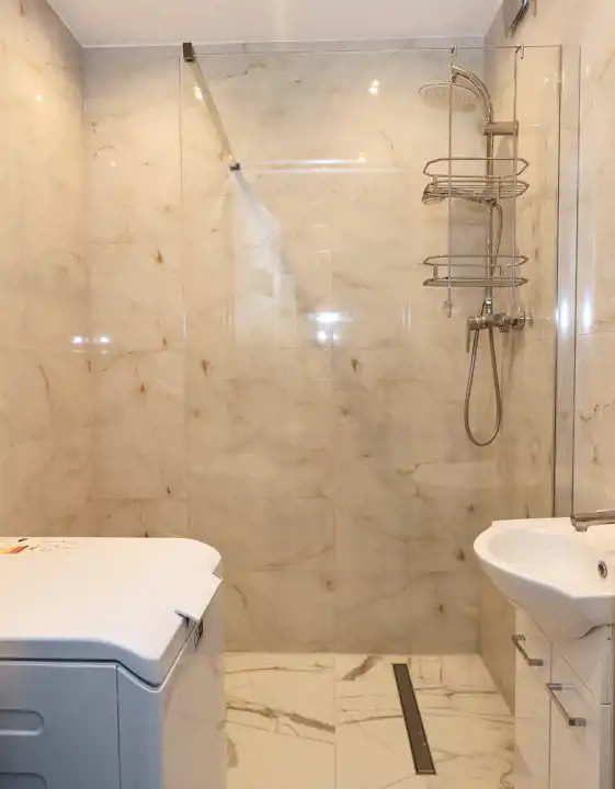 - łazienka z nowoczesnym prysznicem (odpływ liniowy) oraz osobne wc,