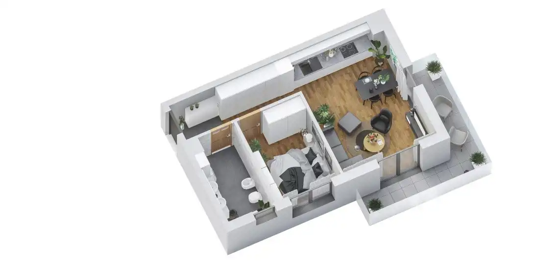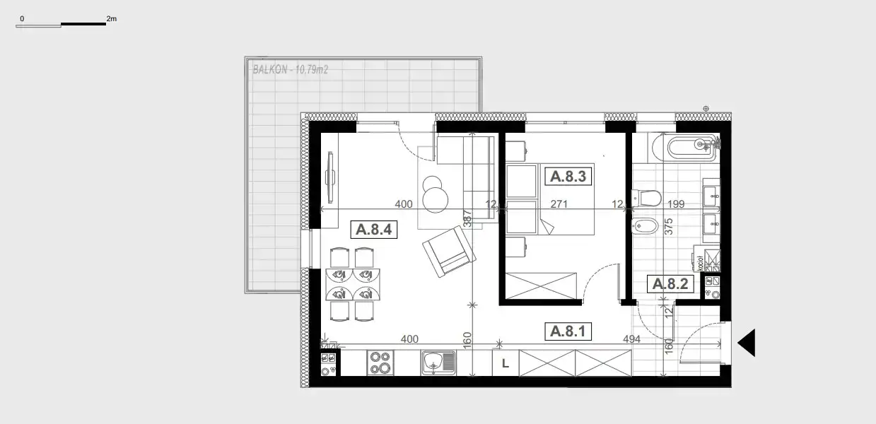 - Charakterystyka mieszkania 46.53 m2, 2 pokoje