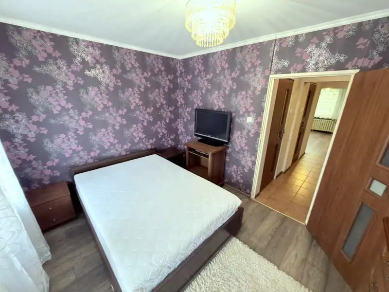 pokój sypialniany: łóżko sypialniane, szafa, komoda,