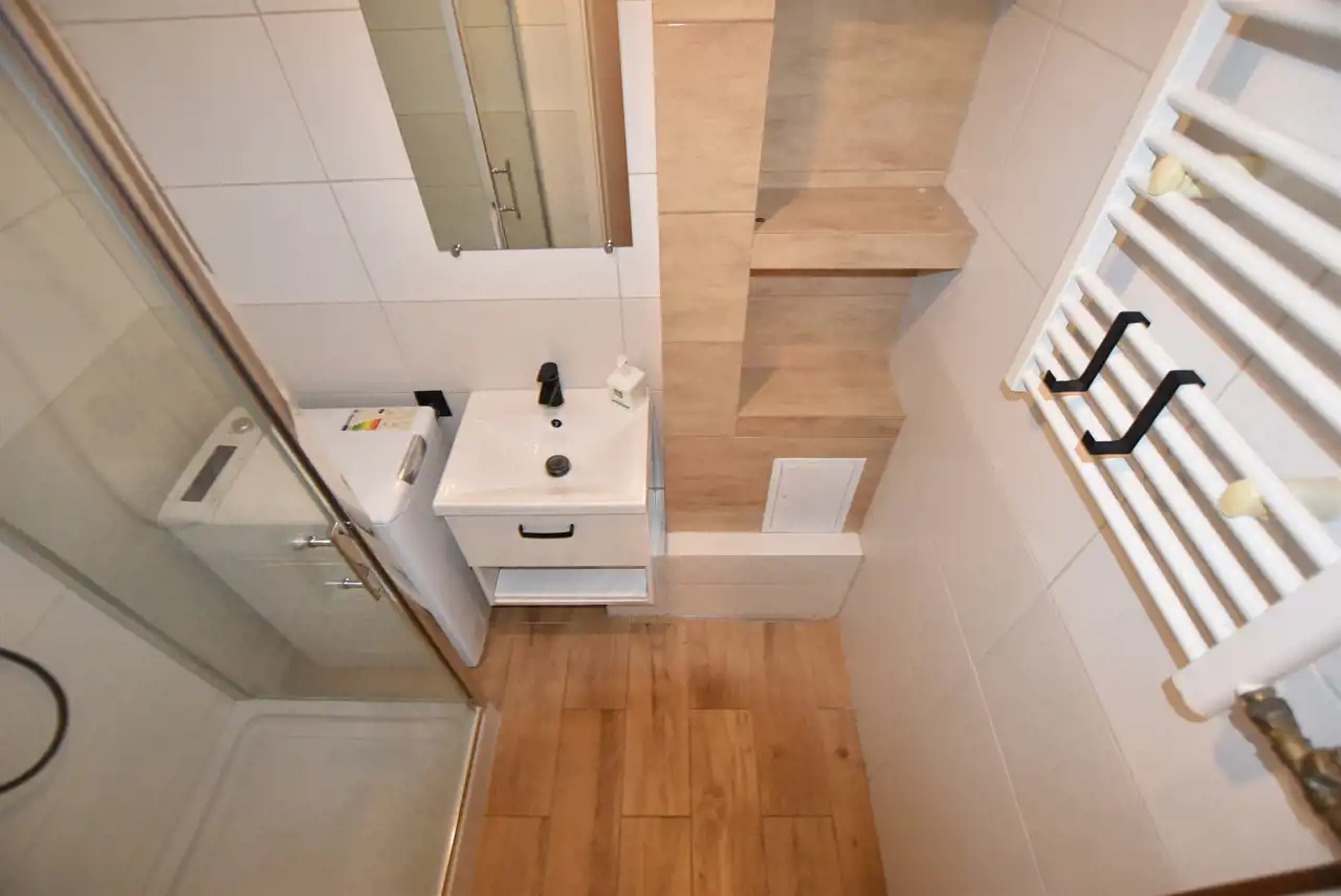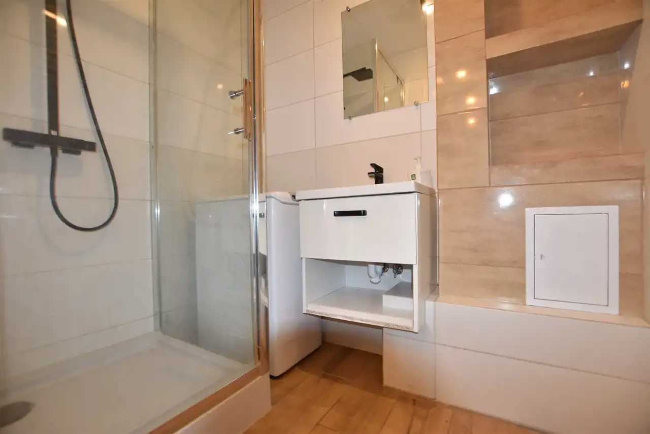- ŁAZIENKĘ doposażoną w prysznic (na stanie pralka na gwarancji).