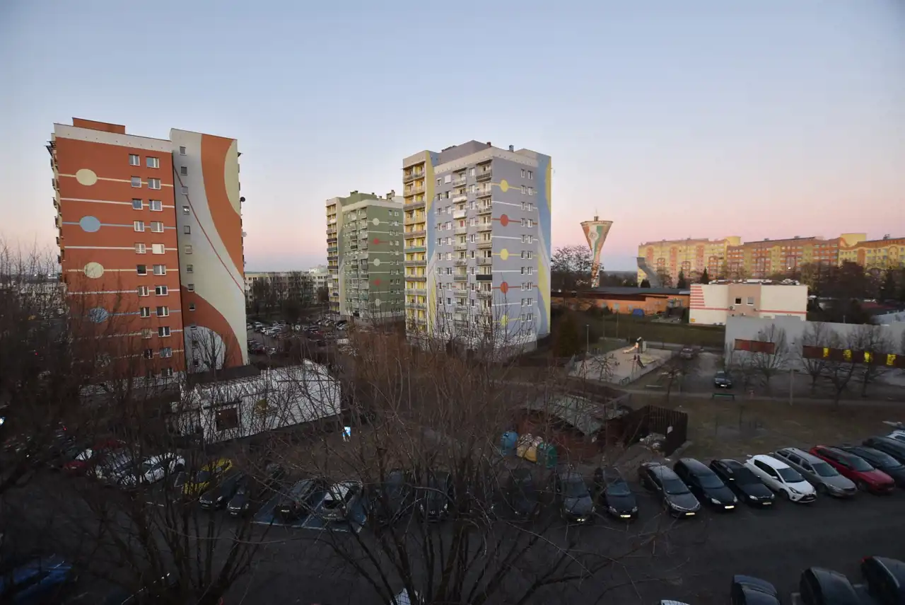 W sąsiedztwie bloku: tereny zielone z placami zabaw dla dzieci i boska sportowe. Dużo miejsc parkingowych.