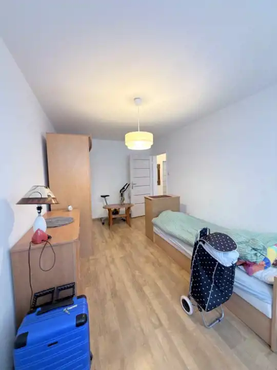 2 pokoje sypialniane: łóżko sypialniane, szafa;