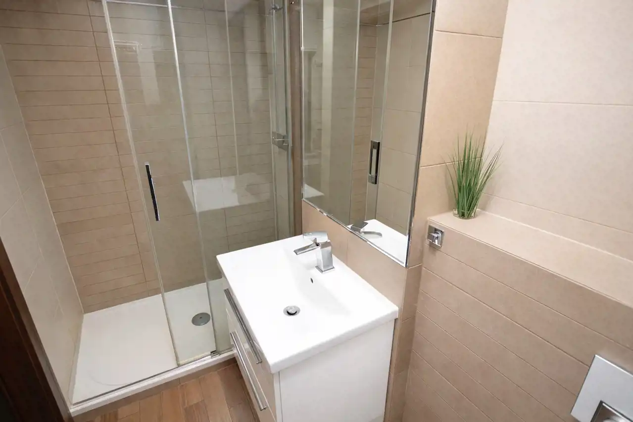 - łazienka z WC z dużą kabiną prysznicową