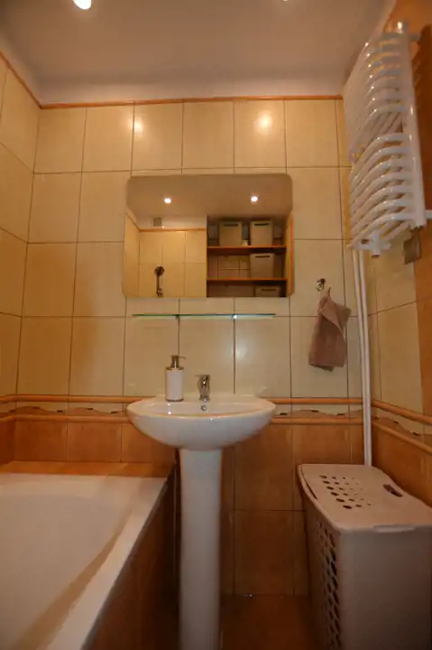 Mieszkanie wykończone wysokiej jakości materiałami z dbałością o szczegóły .