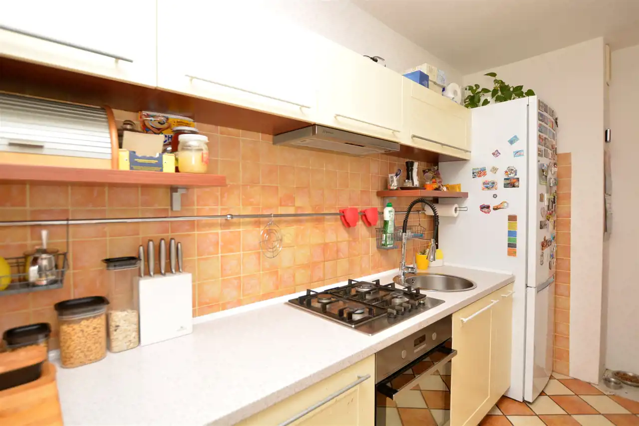 - Zabudowa w kuchni wraz z kompletnym wyposażeniem AGD - lodówko-zamrażarka, płyta gazowa, piekarnik, zmywarka, okap, zlew kompozytowy