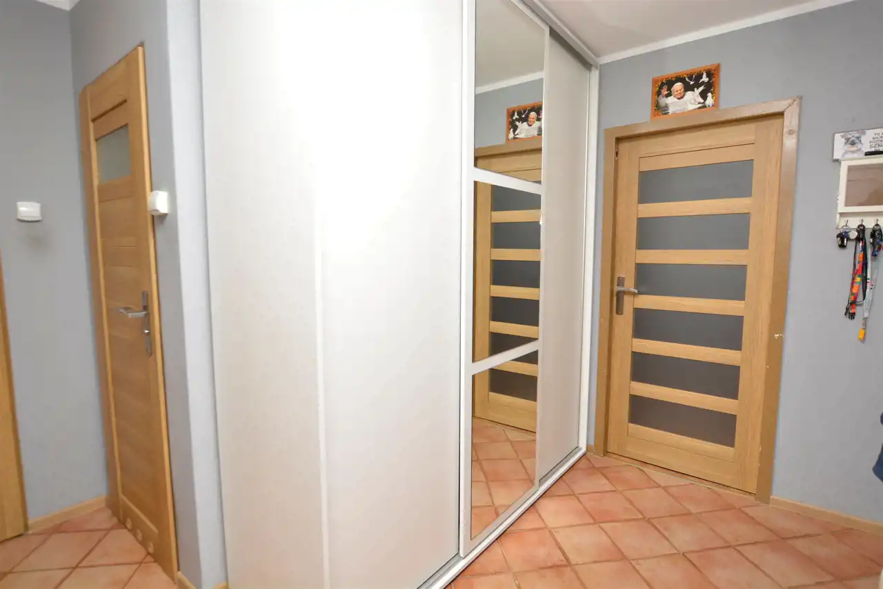 - Na ścianach gładzie, na podłogach panele oraz terakota