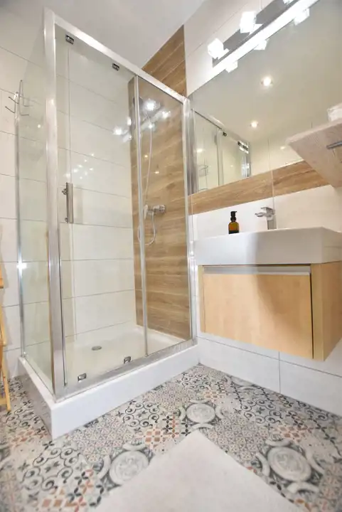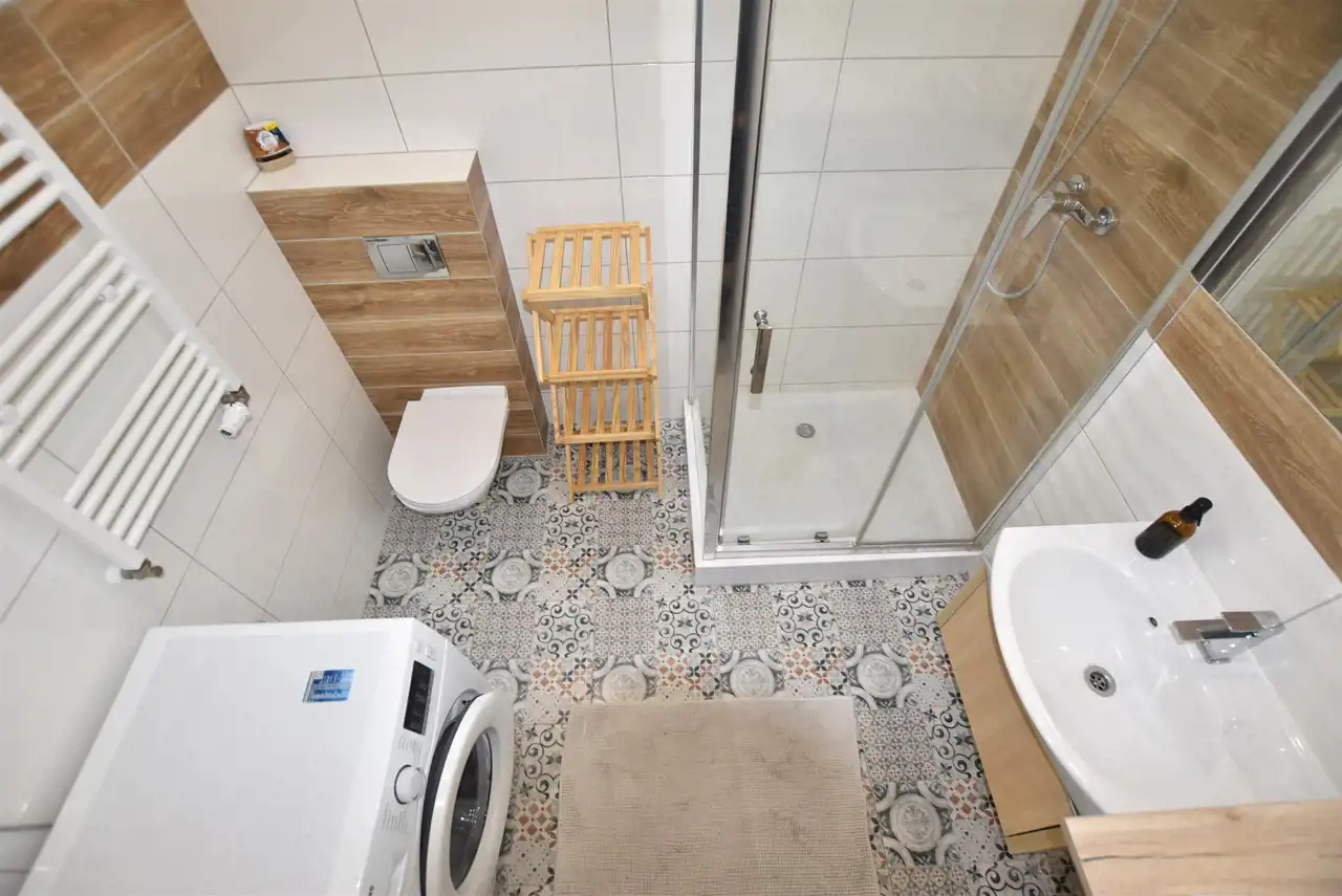 - łazienka z WC pow.4,25 m.k (wyposażona w kabinę prysznicową);