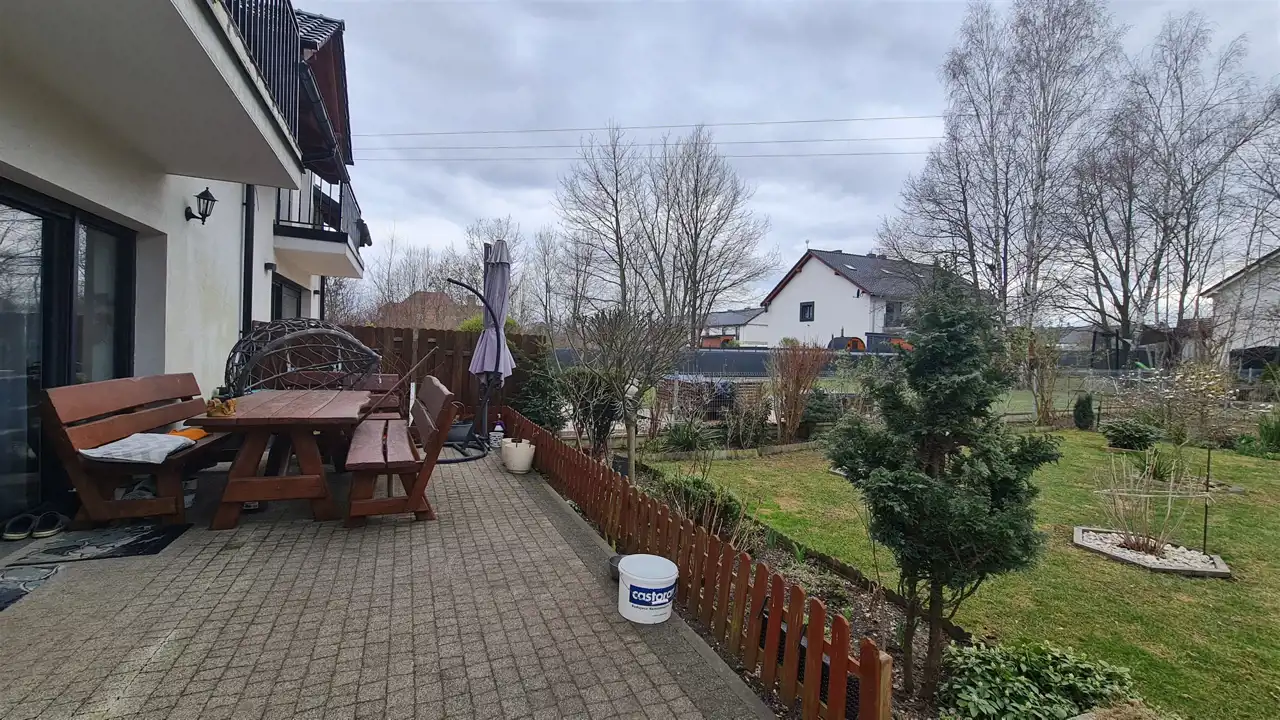 Mieszkanie idealne zarówno dla osób starszych, jak i dla rodzin z dziećmi, poszukujących wygodnej przestrzeni z dostępem do ogrodu.