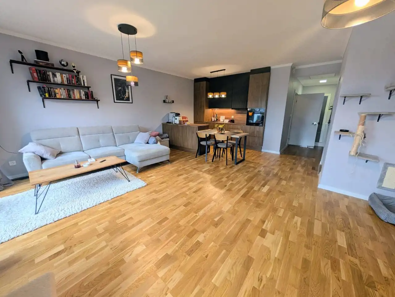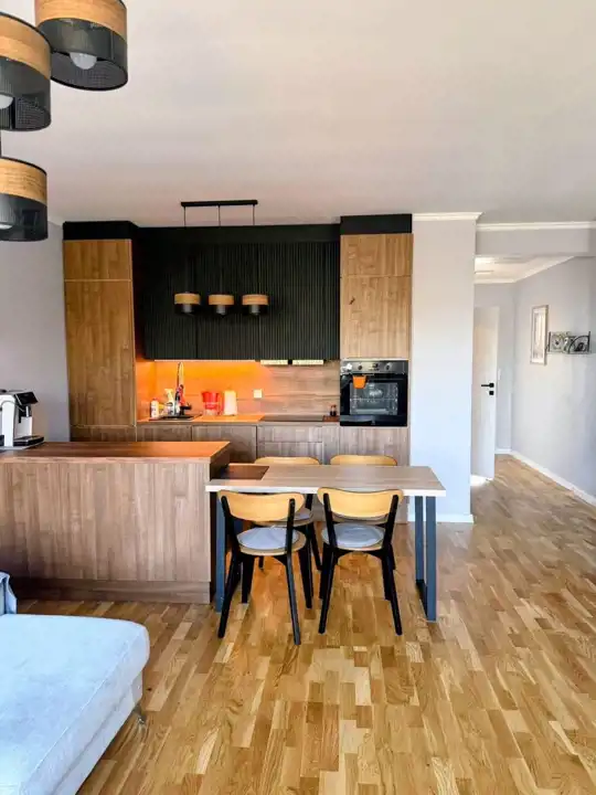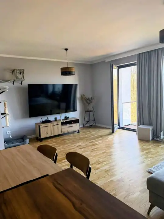 salonu z aneksem kuchennym i wyjściem na 12 - metrowy taras,