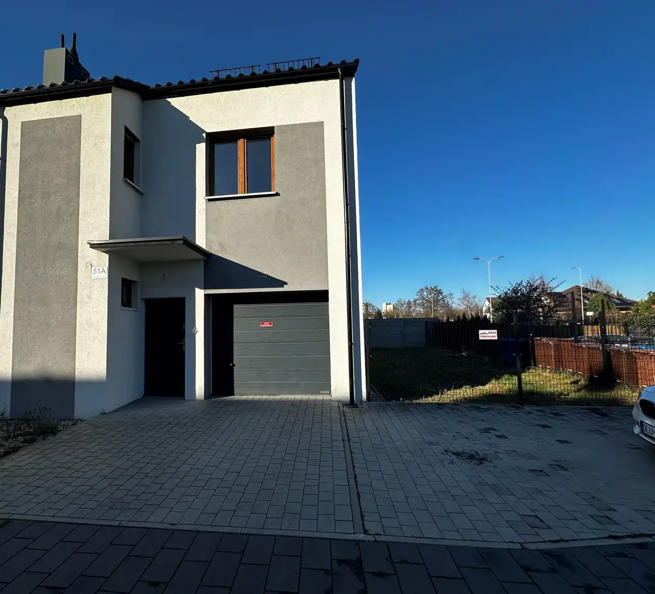 Budynek 5-cio letni, murowany, z gotową elewacją, kryty dachówką. Garaż ( 15m2) w bryle.
