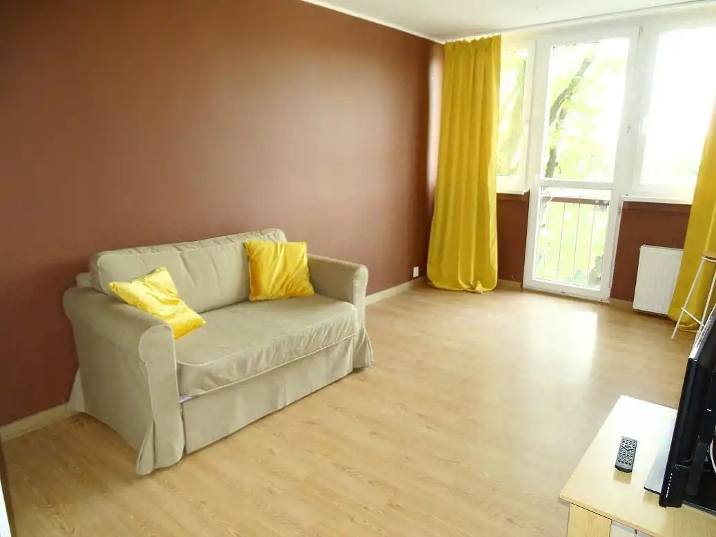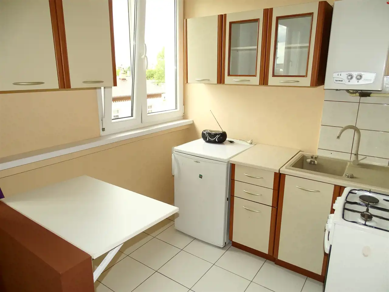 Mieszkanie zadbane, składające się z pokoju z aneksem kuchennym, przedpokoju i łazienki z WC. Kawalerka wyposażona w niezbędny sprzęt taki jak: kuchenka gazowa, lodówka oraz pralka. Do dyspozycji najemcy również piwnica.