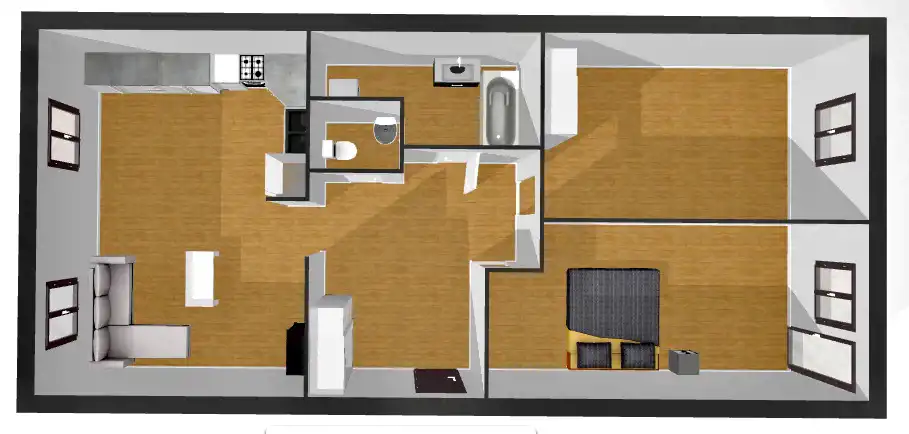 Mieszkanie składa się z 2 osobnych sypialni, kuchni połączonej z jadalnią, toalety, łazienki oraz przedpokoju. Umeblowanie widoczne na zdjęciach.