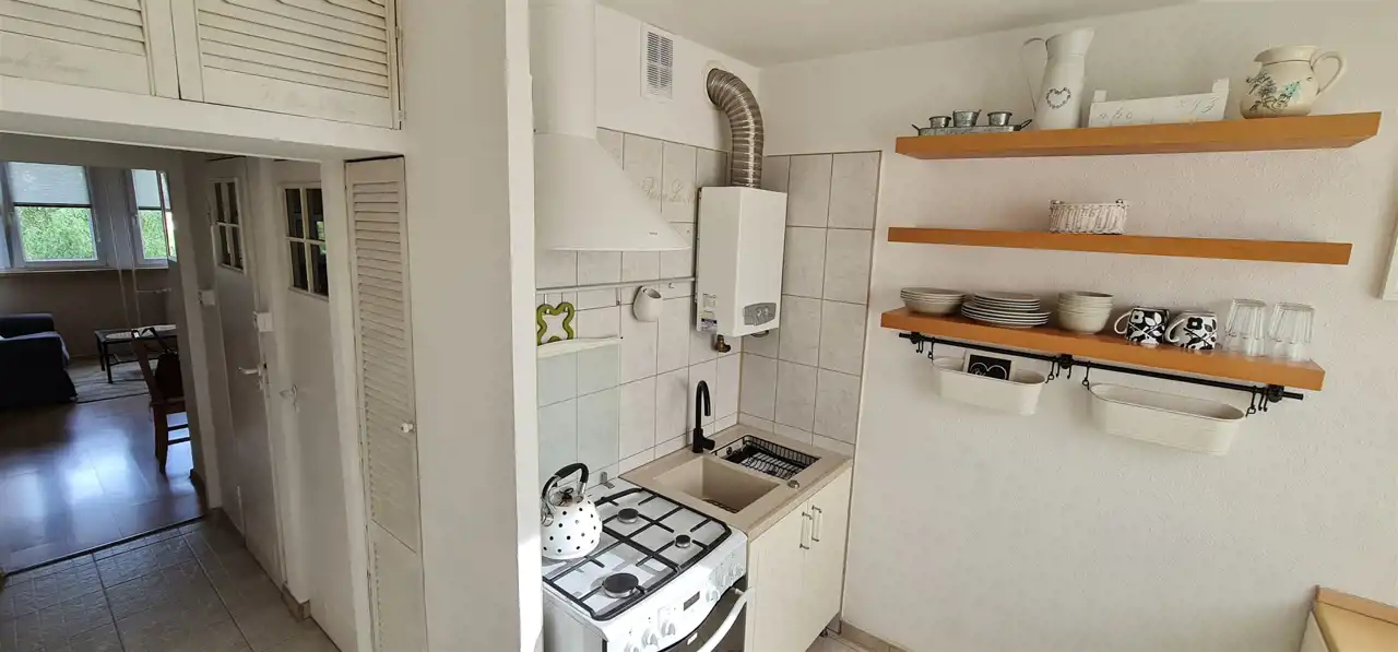 - kuchnia umeblowana i wyposażona w sprzęt AGD (lodówka, kuchenka gazowa)
