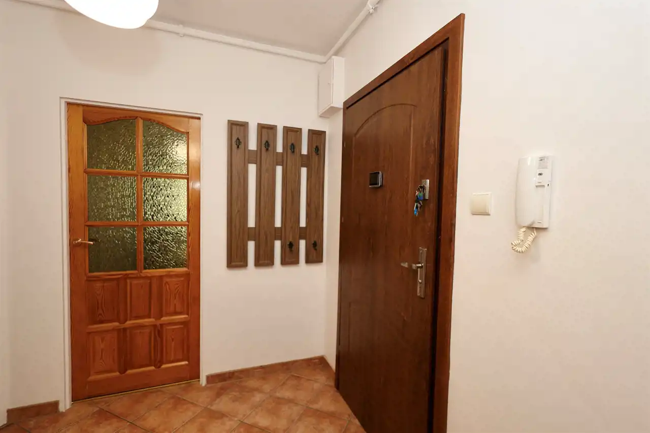 - Układ: przestronna kuchnia, przedpokój z szafą w zabudowie, sypialnia, pokój dzienny z wyjściem na balkon, łazienka z WC