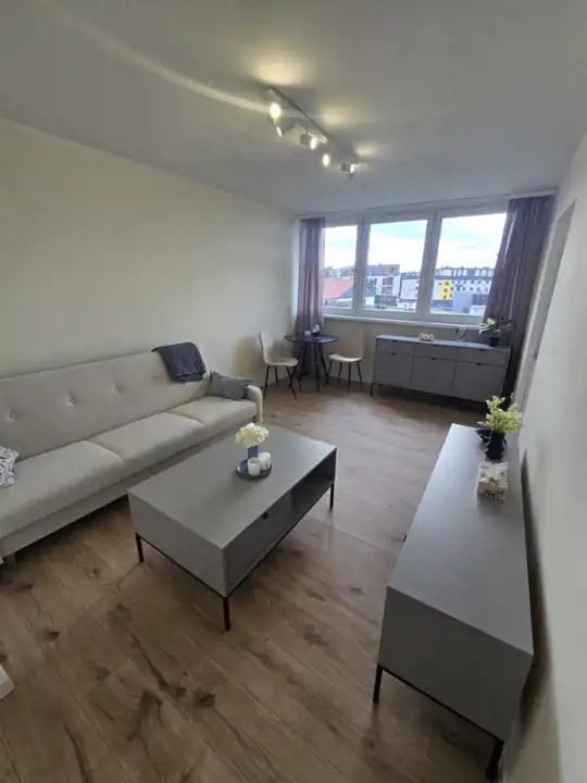 Do wynajęcia mieszkanie na oś. Przylesie przy ul. Leśnej o pow. 39,3 m2 na I piętrze w bloku IV- piętrowym. Lokal po kapitalnym remoncie, dwupokojowy, salon z aneksem kuchennym oraz oddzielną sypialnią. Mieszkanie w pełni umeblowane w meble pokojowe oraz meble kuchenne ze sprzętem AGD (możliwość dokupienia łóżka do sypialni). Mieszkanie posiada piwnicę, dostępne od zaraz.