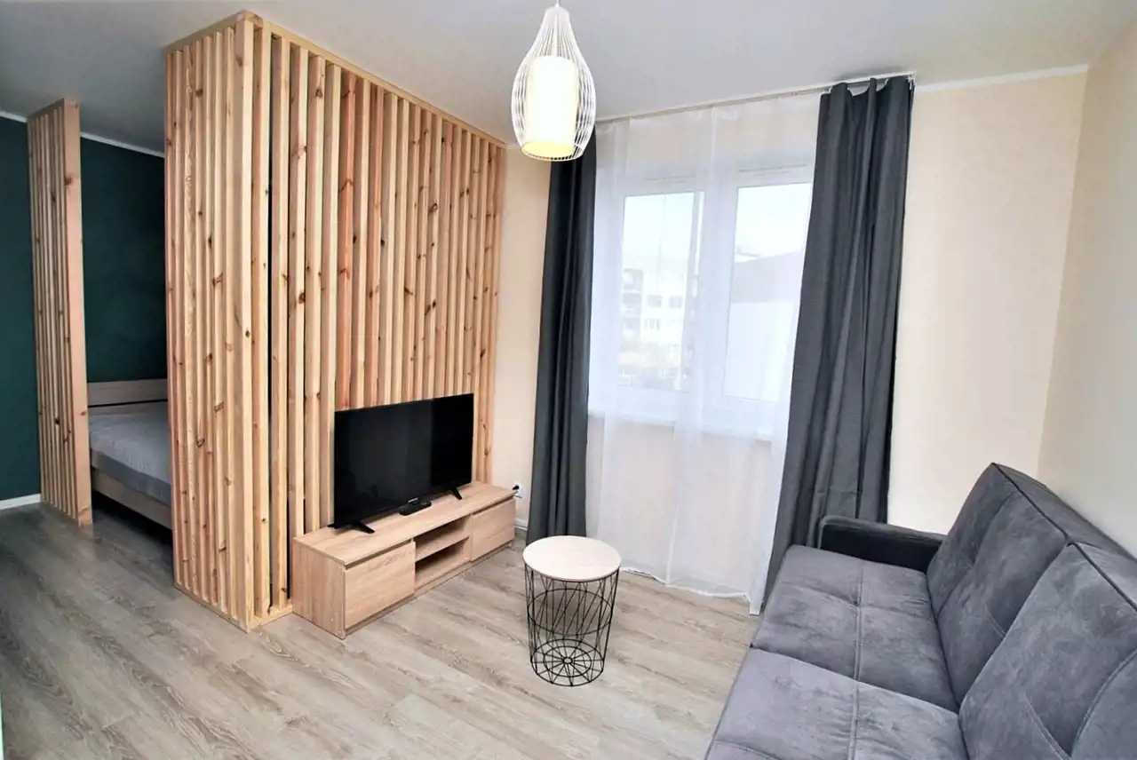 Nieruchomość składa się z kuchni otwartej na pokój (w pokoju znajduje się wydzielony aneks sypialny), łazienki z wc oraz przedpokoju.