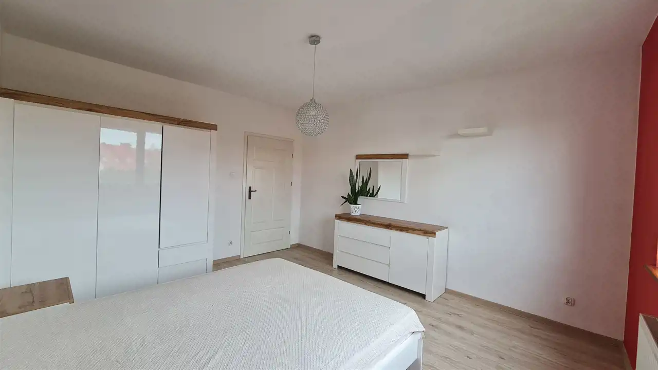 - całkowicie umeblowana sypialnia (aktualnie ściany odświeżone pomalowane na biało)