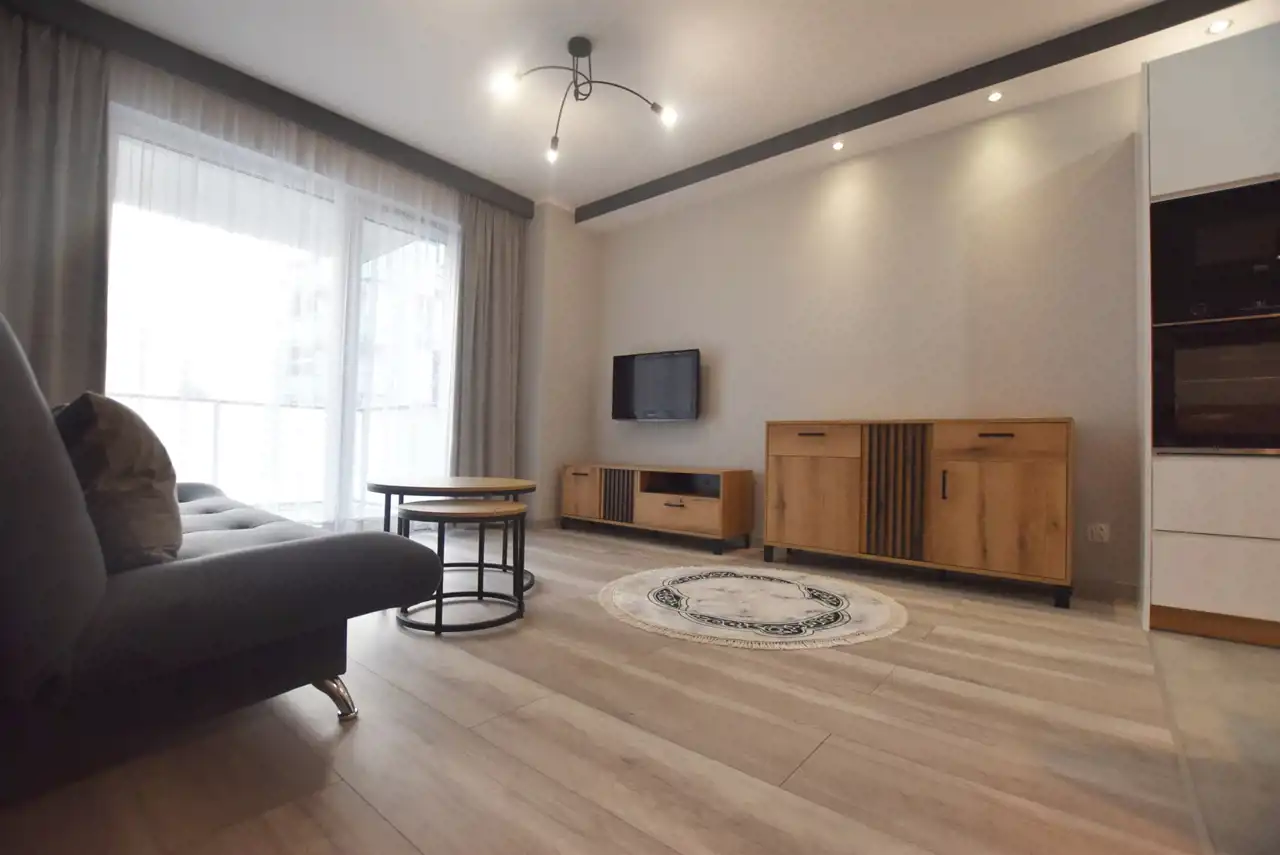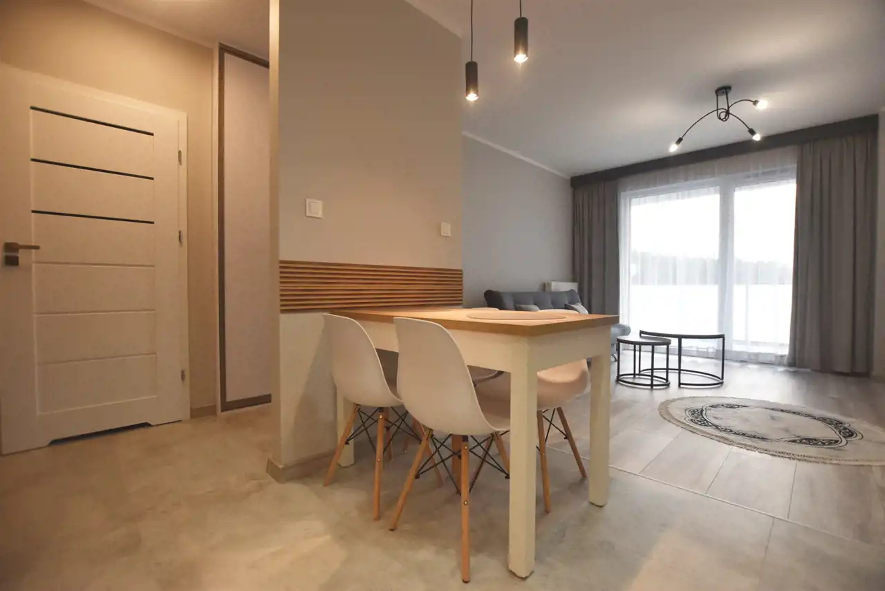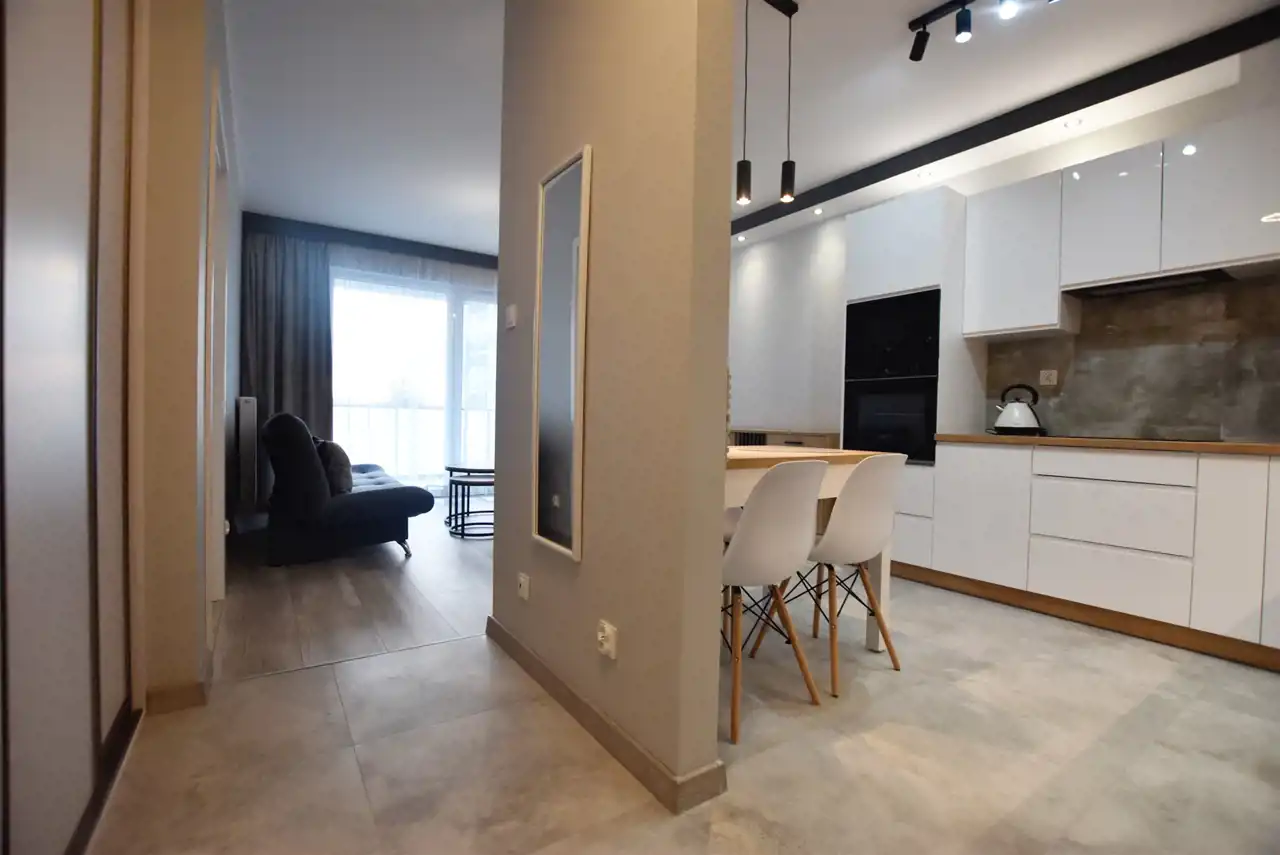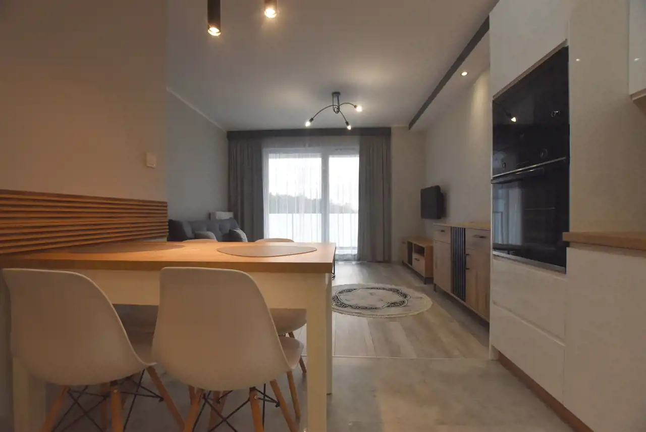 Do dyspozycji najemcy nowy sprzęt AGD obejmujący: lodówkę z zamrażarką, zmywarkę, piekarnik, mikrofalówkę, płytę indukcyjną, okap, pralkę, telewizor, meble...