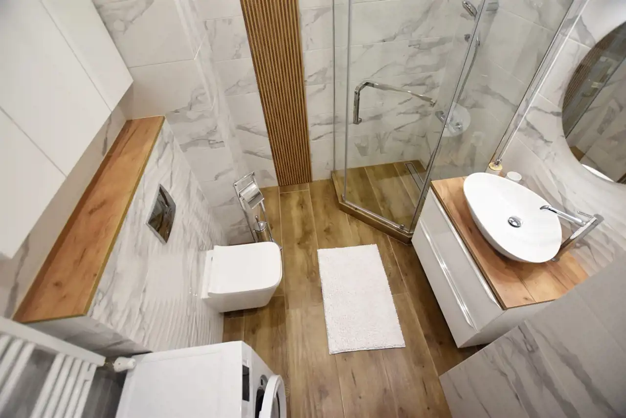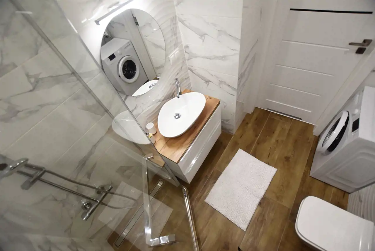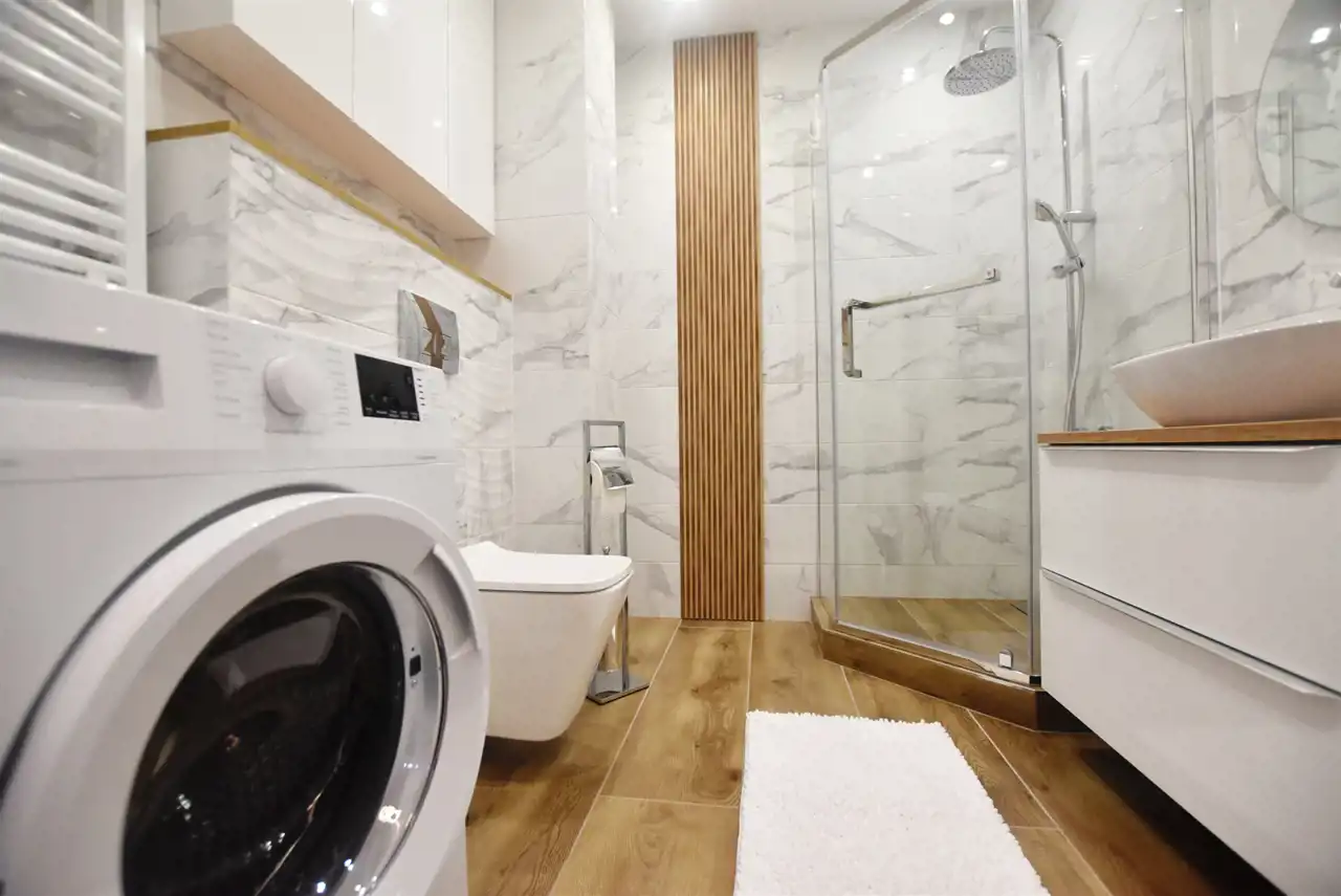 - łazienkę z wc (kabina prysznicowa, pralka),