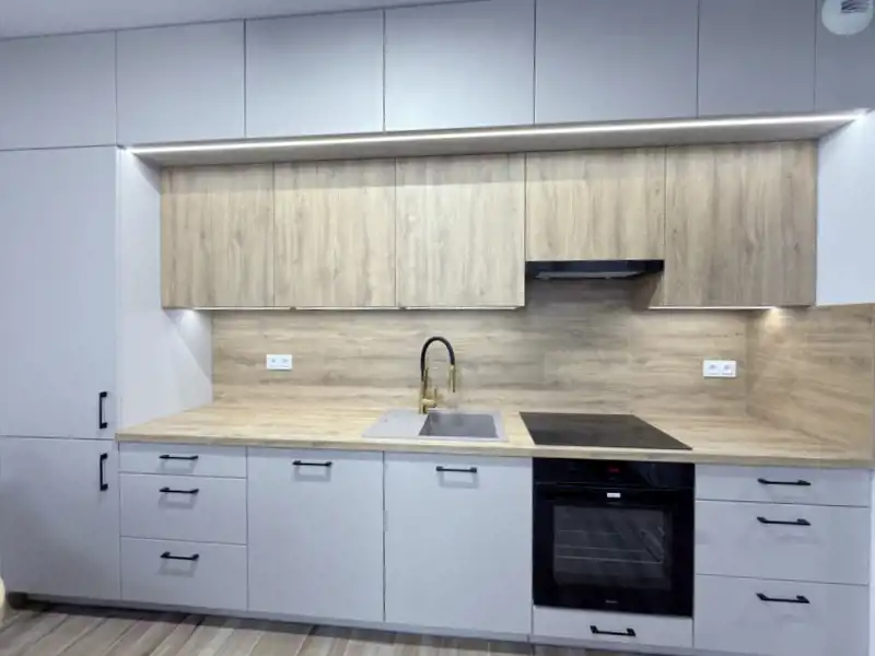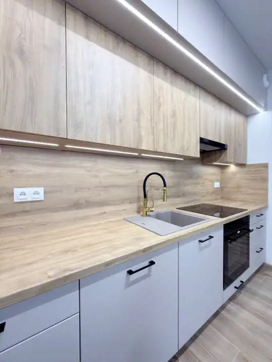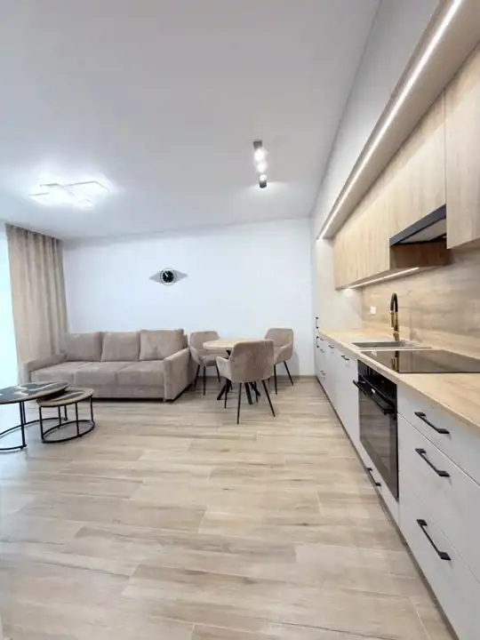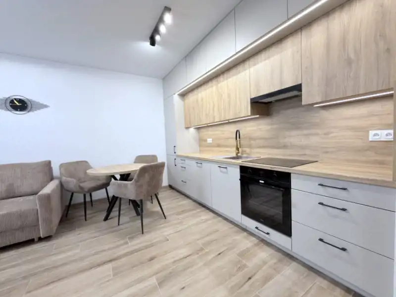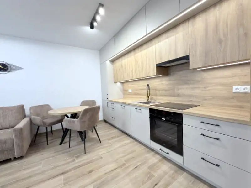 Kuchnia – nowe meble na wymiar; wyposażona we wszelki niezbędny sprzęt AGD (piekarnik, lodówka, zmywarka, płyta indukcyjna);