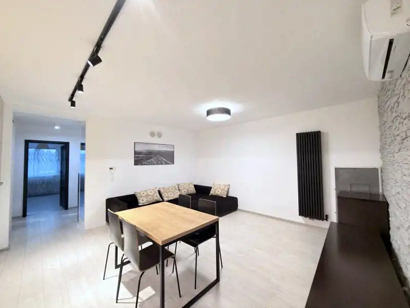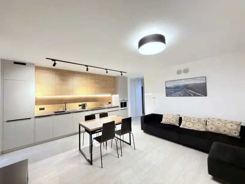 Salon z aneksem kuchennym – z wyjściem na duży balkon - wypoczynek, stół, 4 krzesła, szafka rtv. KLIMATYZACJA.