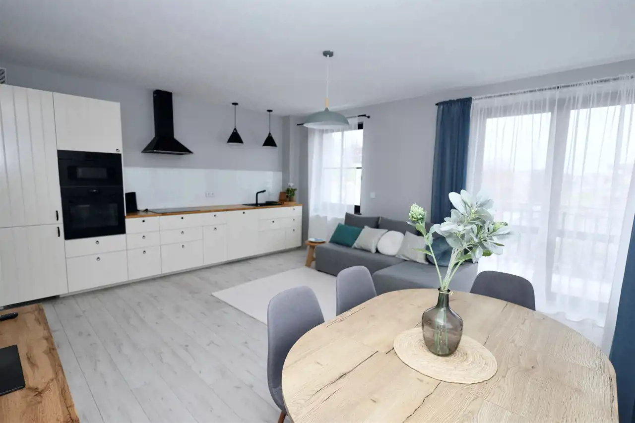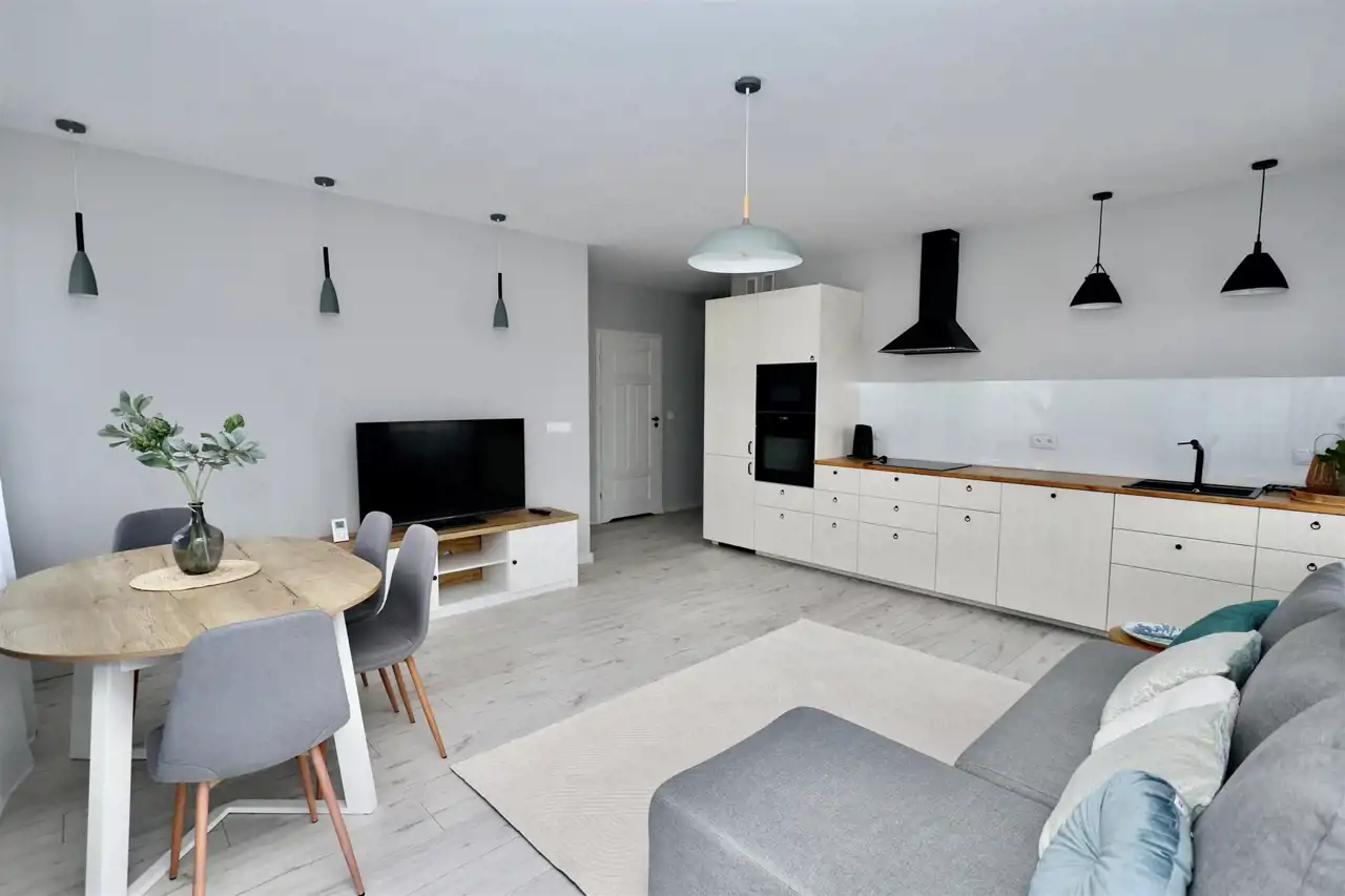 W pełni umeblowany apartament z miejscem postojowym.