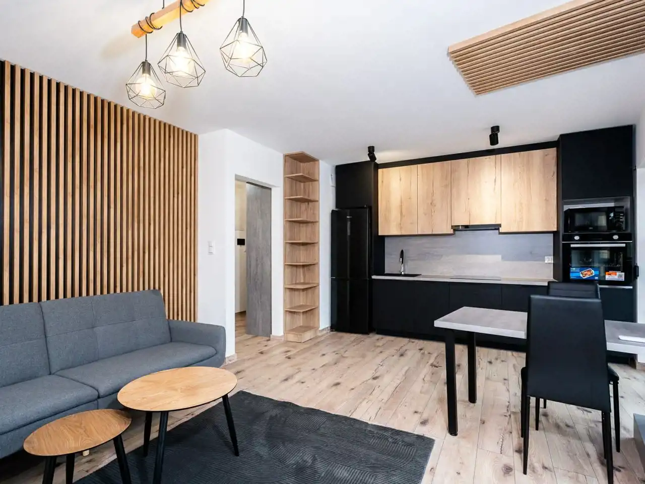 - Meble, pralka, lodówka, zmywarka i piekarnik zapewniają komfort.