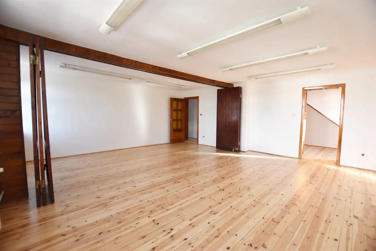 - PODDASZA w budynku, pow. 150 m2 z w kwocie 7000 zł netto z 3 miejscami parkingowymi.