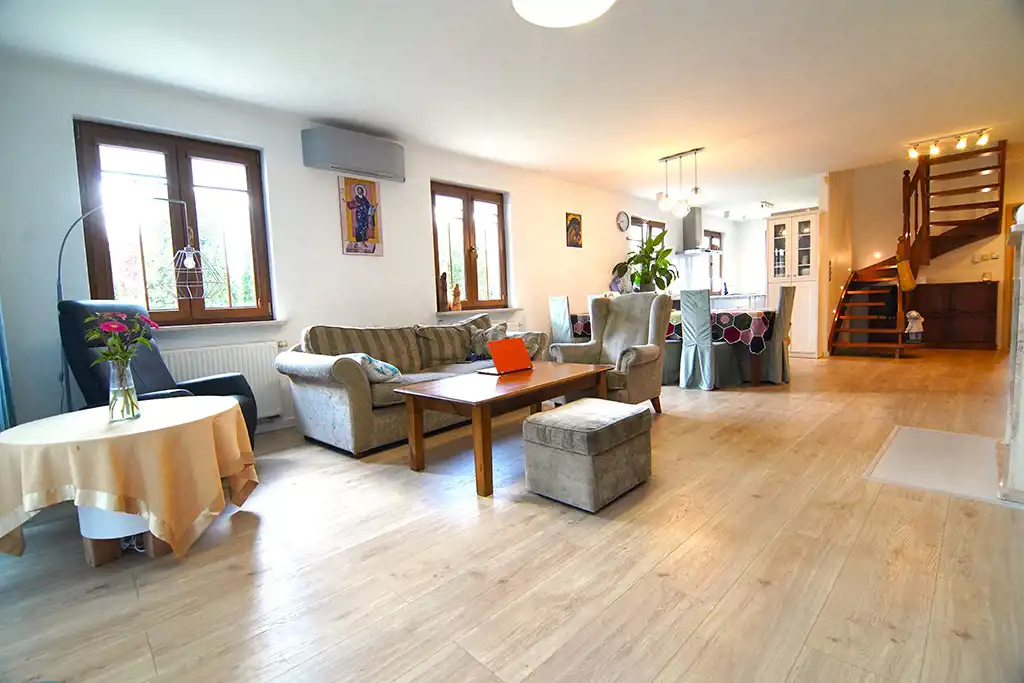 - klimatyzacja na parterze w salonie i w sypialni na piętrze