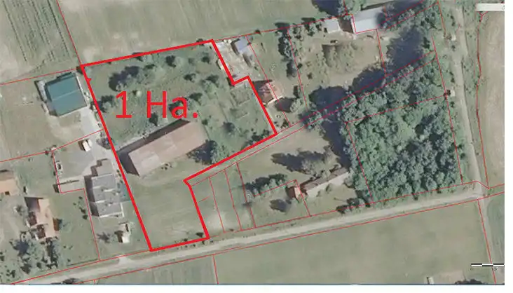 Na posesji znajduje się duża stodoła o pow. 900 m2. Dojazd drogą utwardzoną.