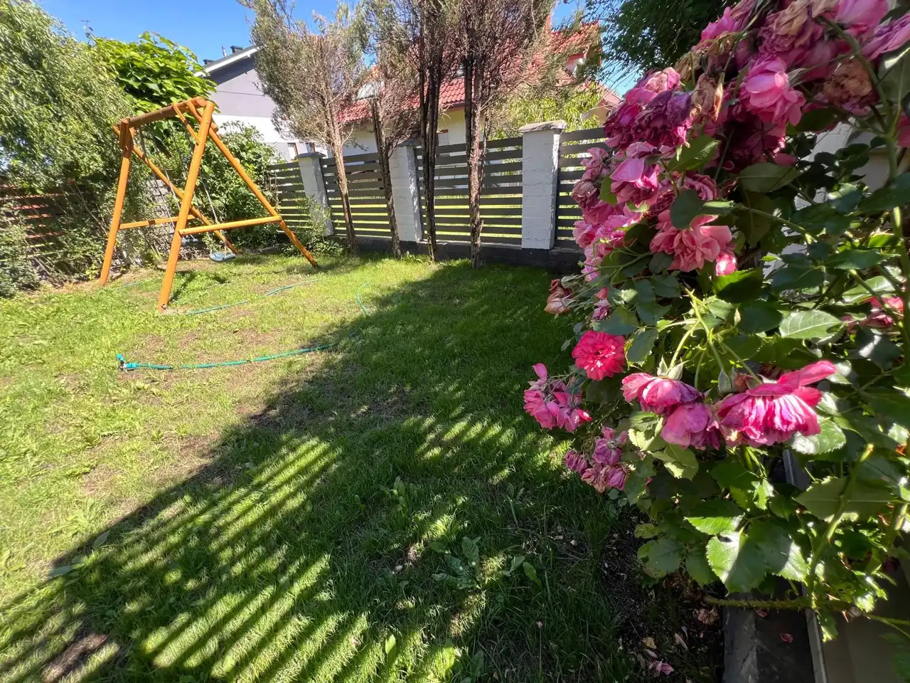 - Działka Zagospodarowana, lekko nachylona, prostokąt