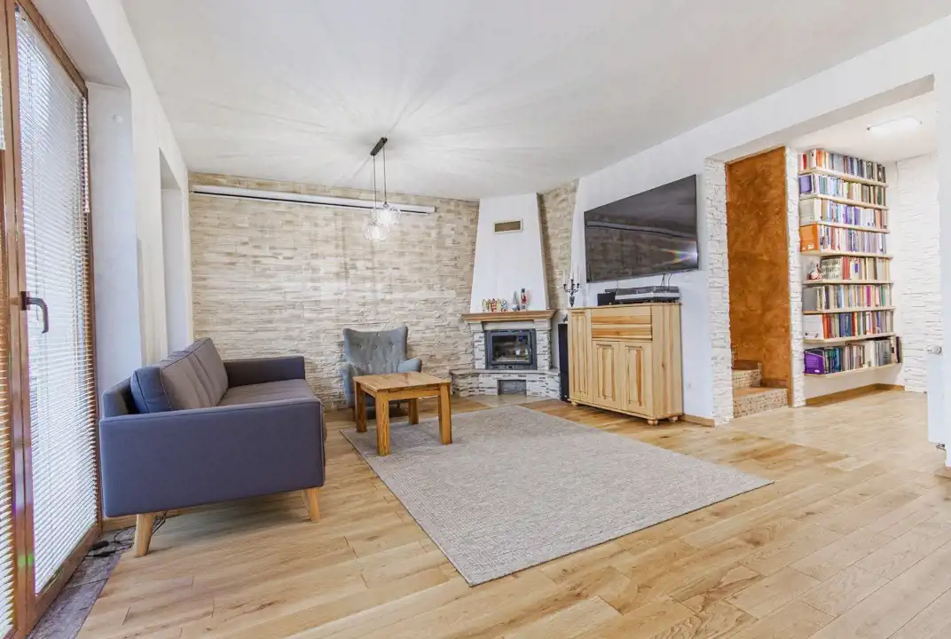Parter to serce domu – przestronny salon z kominkiem, w którym z łatwością zorganizujesz rodzinne wieczory, święta i spotkania z przyjaciółmi. Z salonu jest wyjście na duży taras i do zadbanego ogrodu – idealnego na letnie grillowanie, zabawy dzieci czy spokojną poranną kawę. Obok znajduje się kuchnia z zabudową wykonaną na wymiar (2 lata temu), funkcjonalna i wygodna dla całej rodziny, oraz łazienka. W bryle budynku garaż. Powierzchnia użytkowa obejmuje także garaż.