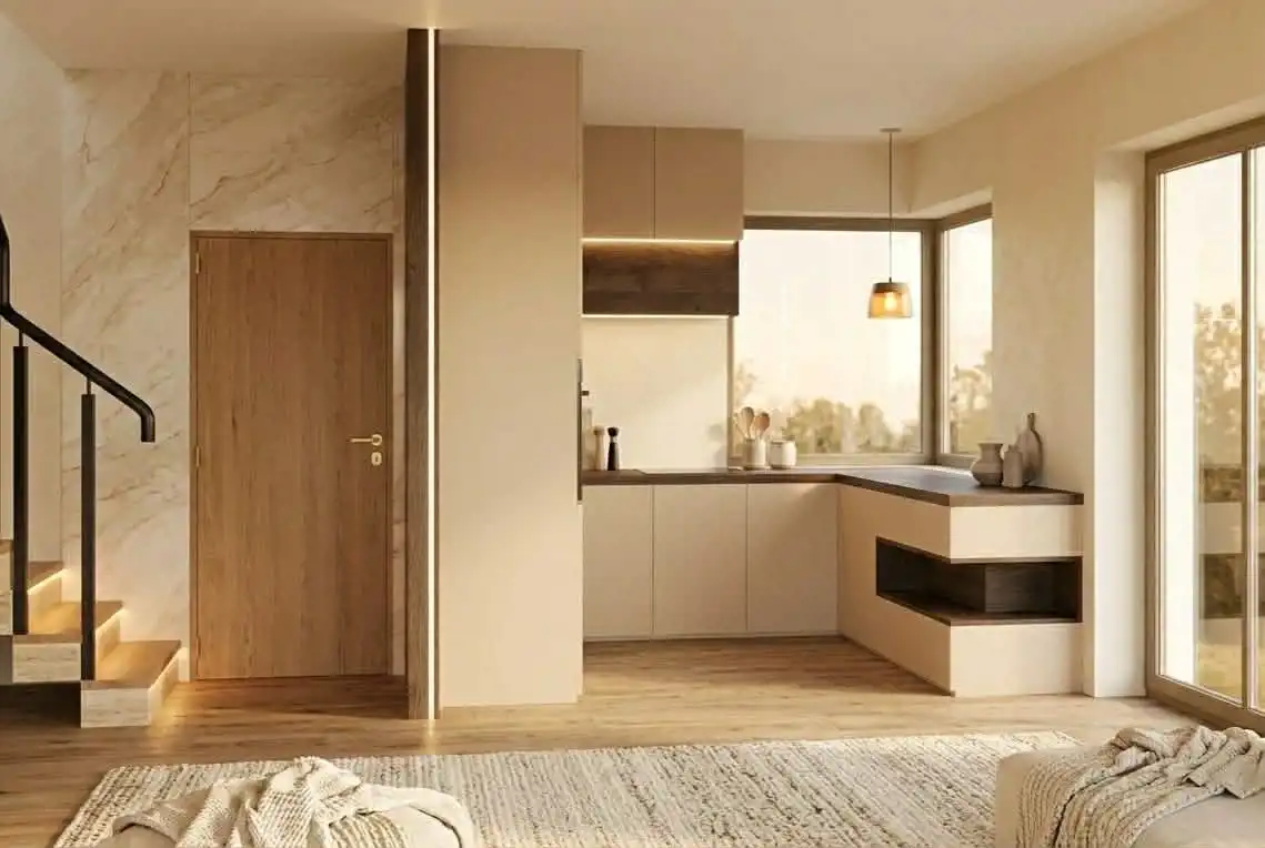 parter : salon z jadalnią, aneks kuchenny, gabinet, łazienka, wiatrołap, garaż