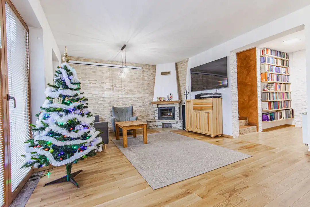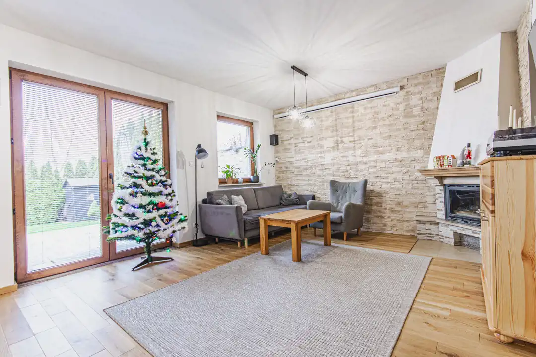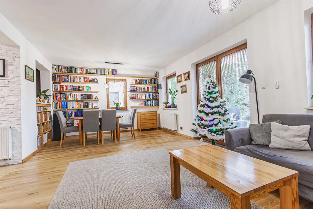 W salonie położona została naturalna deska dębowa (2 lata temu), która nadaje wnętrzu ciepły, domowy charakter. Dom jest dobrze ocieplony, posiada ogrzewanie gazowe, ogrzewanie podłogowe w przedpokoju na parterze, kanalizację miejską oraz własną studnię głębinową ze sterownikiem inwerterowym,