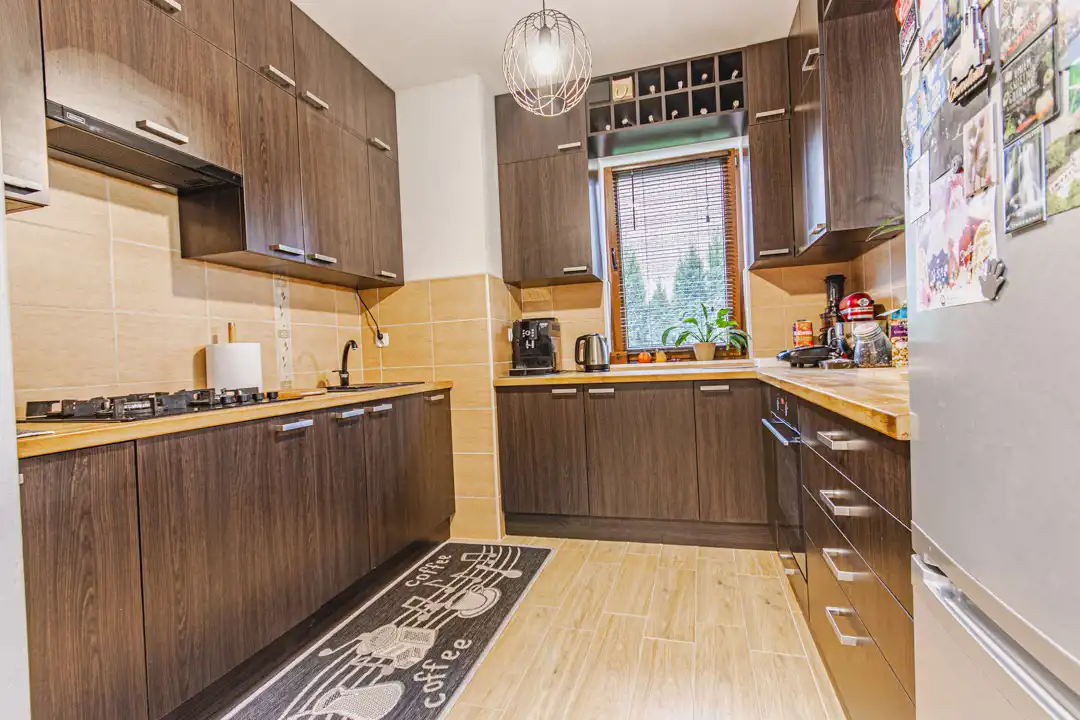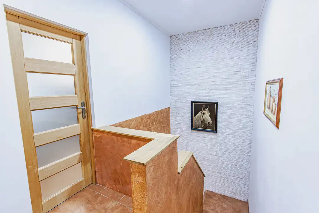 Parter to serce domu – przestronny salon z kominkiem, w którym z łatwością zorganizujesz rodzinne wieczory, święta i spotkania z przyjaciółmi. Z salonu jest wyjście na duży taras i do zadbanego ogrodu – idealnego na letnie grillowanie, zabawy dzieci czy spokojną poranną kawę. Obok znajduje się kuchnia z zabudową wykonaną na wymiar (2 lata temu), funkcjonalna i wygodna dla całej rodziny, oraz łazienka. W bryle budynku garaż.