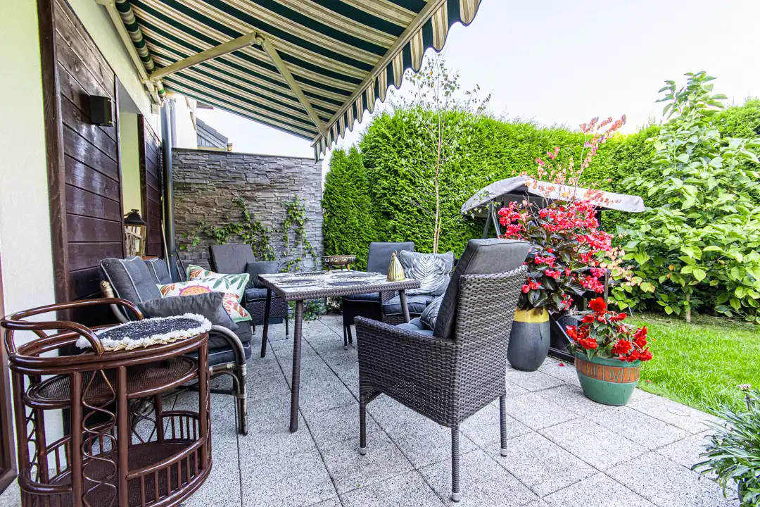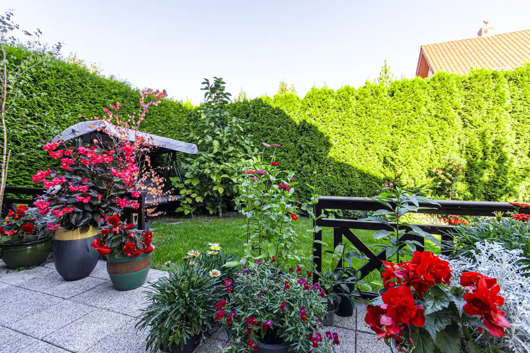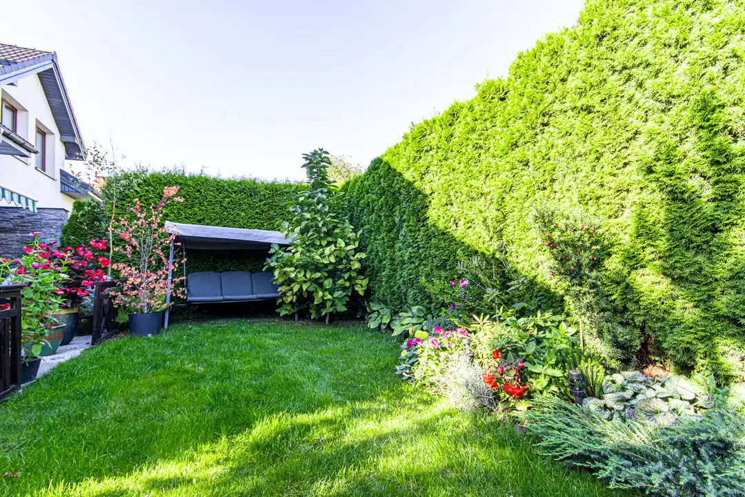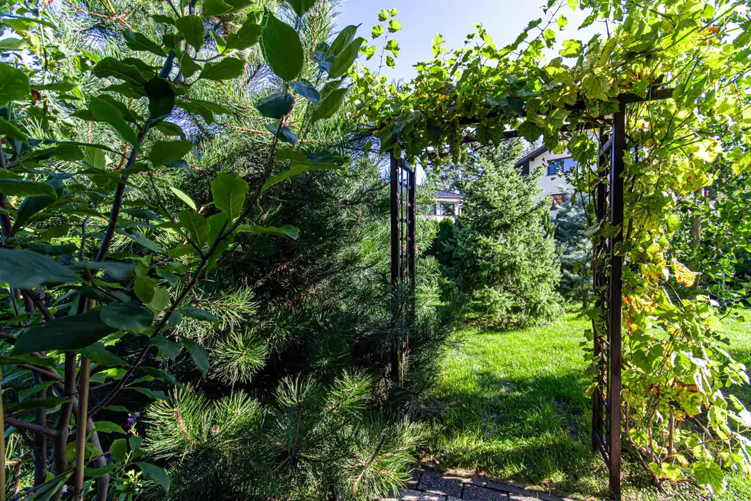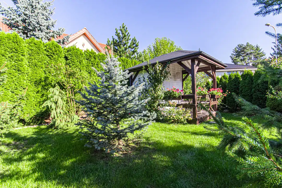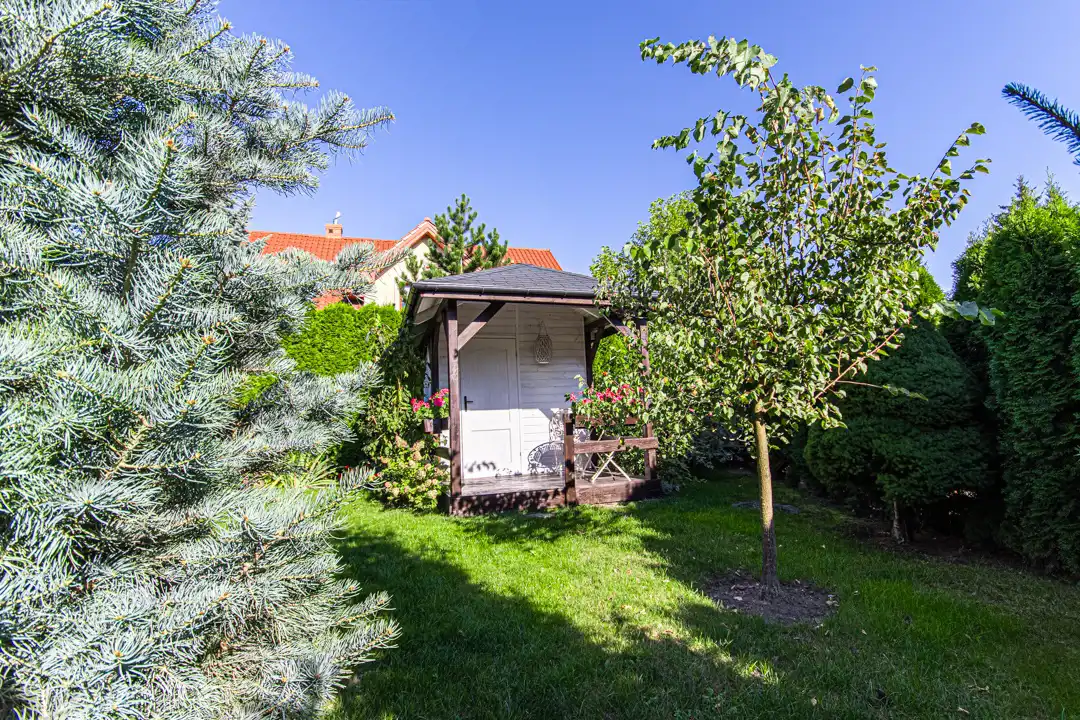 pięknie zagospodarowany ogród z altaną z werandą – idealne miejsce do wypoczynku,
