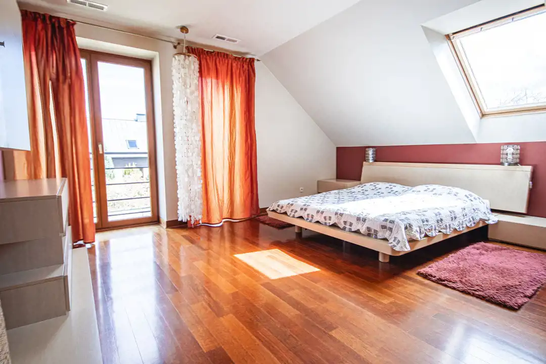 Dom urządzony z dbałością o detale, wyposażony w włoskie meble (większość zostaje w cenie), drewniane podłogi Merbau w pokojach, ogrzewanie podłogowe w łazienkach, a także szyby P4 na parterze dla większego bezpieczeństwa. Duże przeszklenia dodają przestrzeni i pięknie doświetlają przestrzeń dzienną.