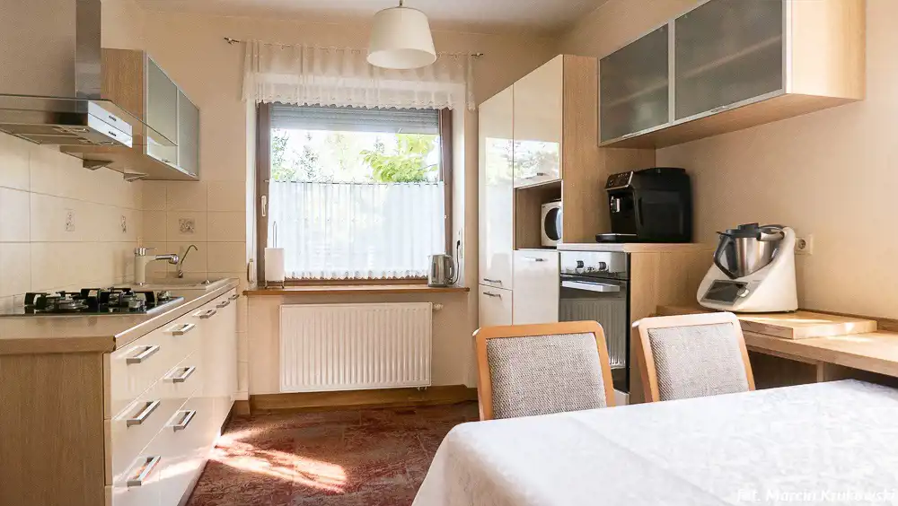 Dom jest przestronny, swobodnie pomieści 4-5 os. rodzinę.