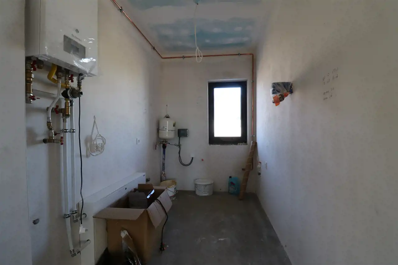 W układzie pomieszczeń : jasna kuchnia ze spiżarką otwarta na jadalnię i salon, trzy sypialnie, łazienka, toaleta, kotłownia, korytarz, wiatrołap. Na tym etapie budowy możiwość modyfikacji pod klienta.
