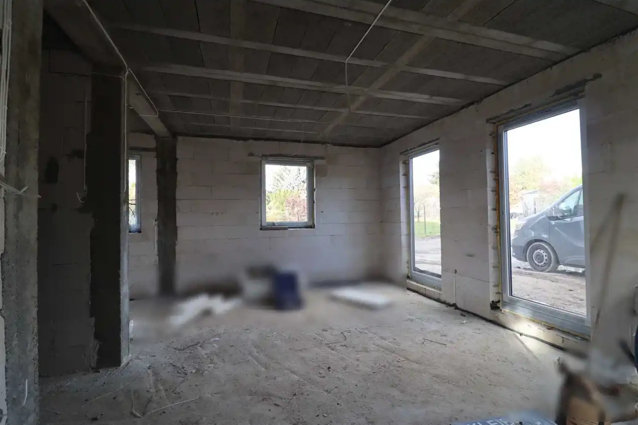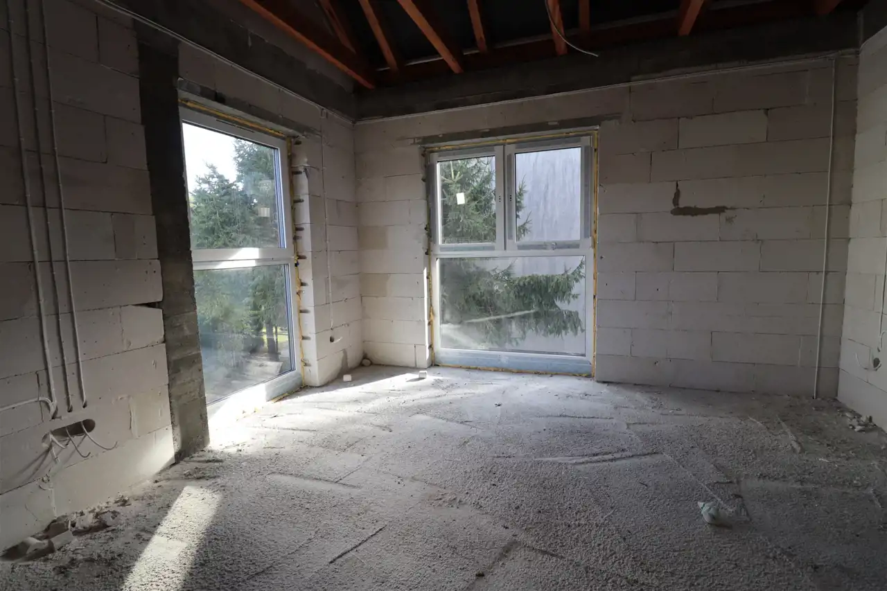 Budowany wg indywidualnego projektu ; z betonu komórkowego docieplony styropianem, strop Teriva docieplony welną oraz kryty blachą.