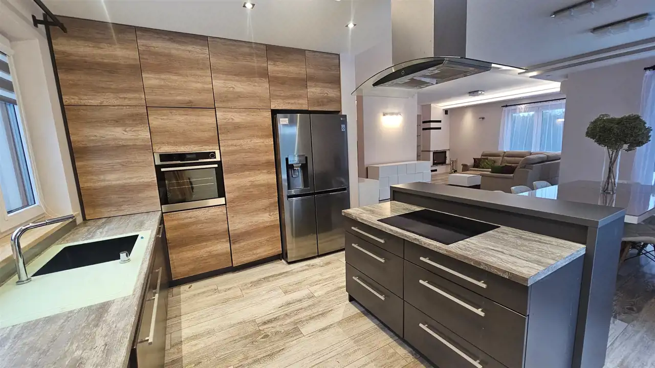 w pełni wyposażona kuchnia (dwuskrzydłowa lodówka, zmywarka, płyta indukcyjna, piekarnik z funkcją gotowania)