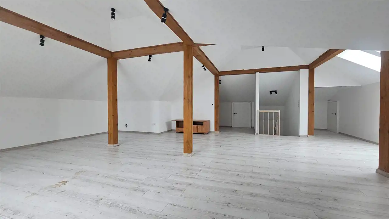 otwarta, doświetlona przestrzeń ze skosami – idealna na gabinet, siłownię, strefę relaksu lub pracownię