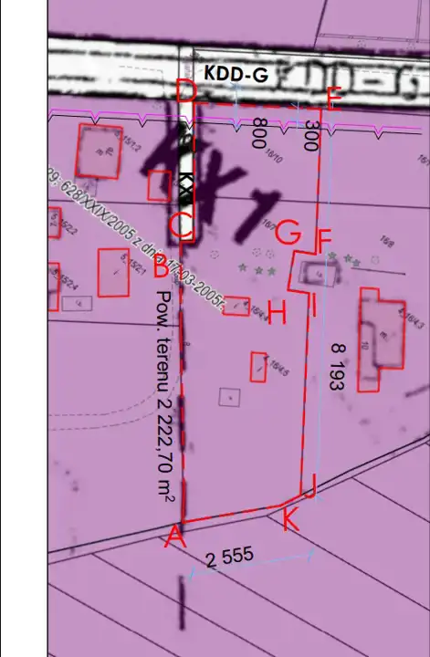 - działka 16/7 - powierzchnia 1695m2 w drugiej linii, szerokość 27m o długości boków /ok 62-68m