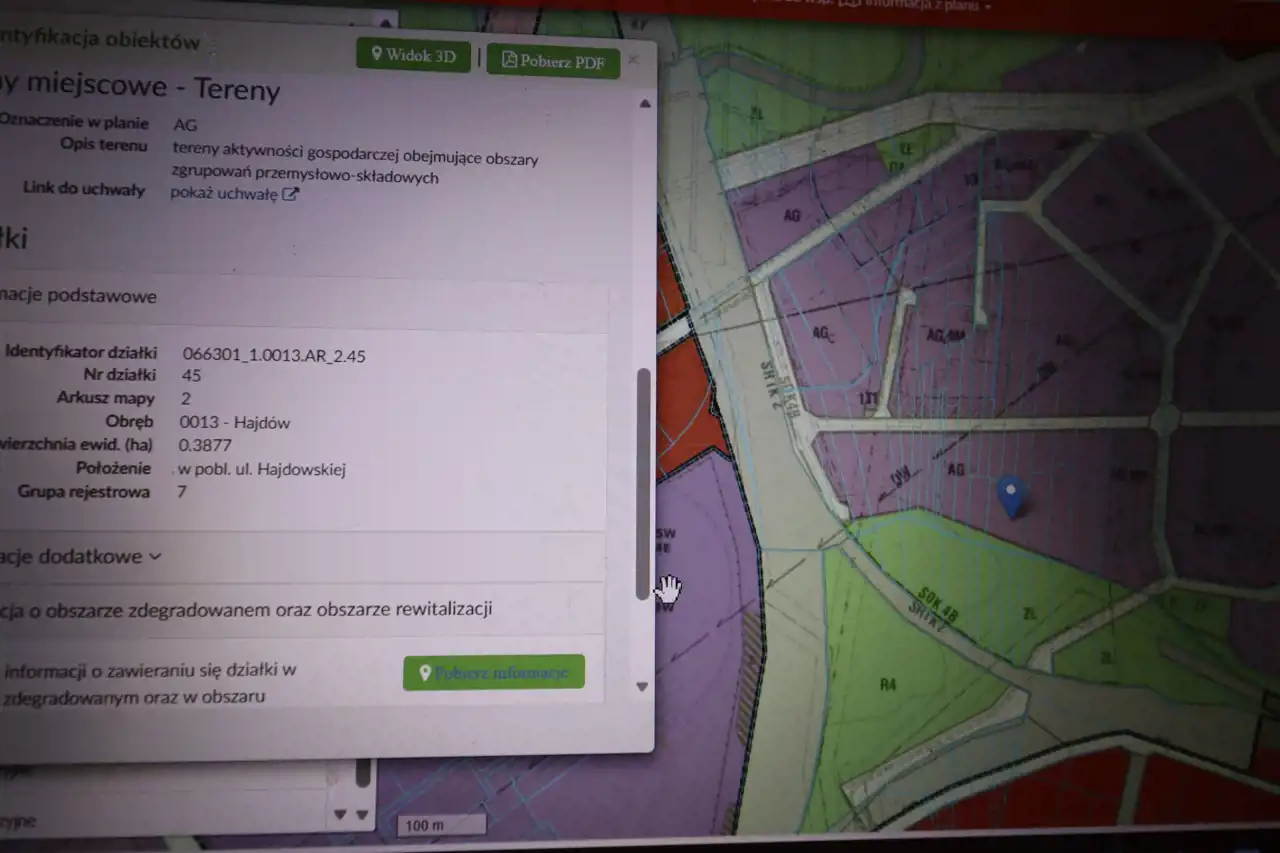-numer ewidencyjny 45 /Hajdów 0013/, powierzchnia 3877m2 o wymiarach ; szerokość 49 i długość 79m