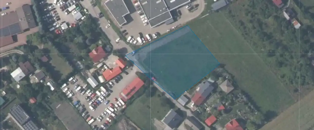 W najbliższym sąsiedztwie salon Forda, market Stokrotka, domy jednorodzinne, tereny niezagospodarowane, różne działalności gospodarcze.