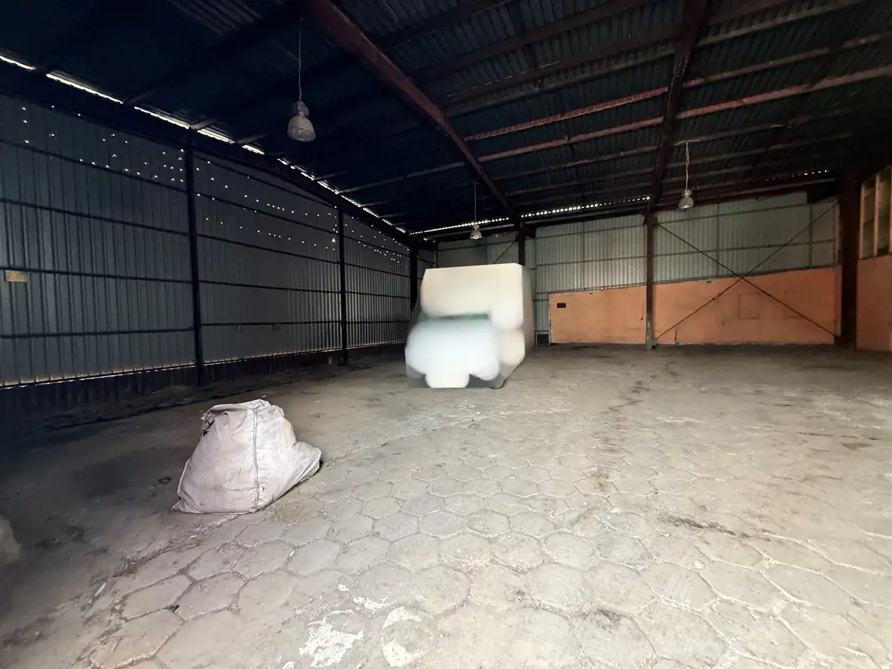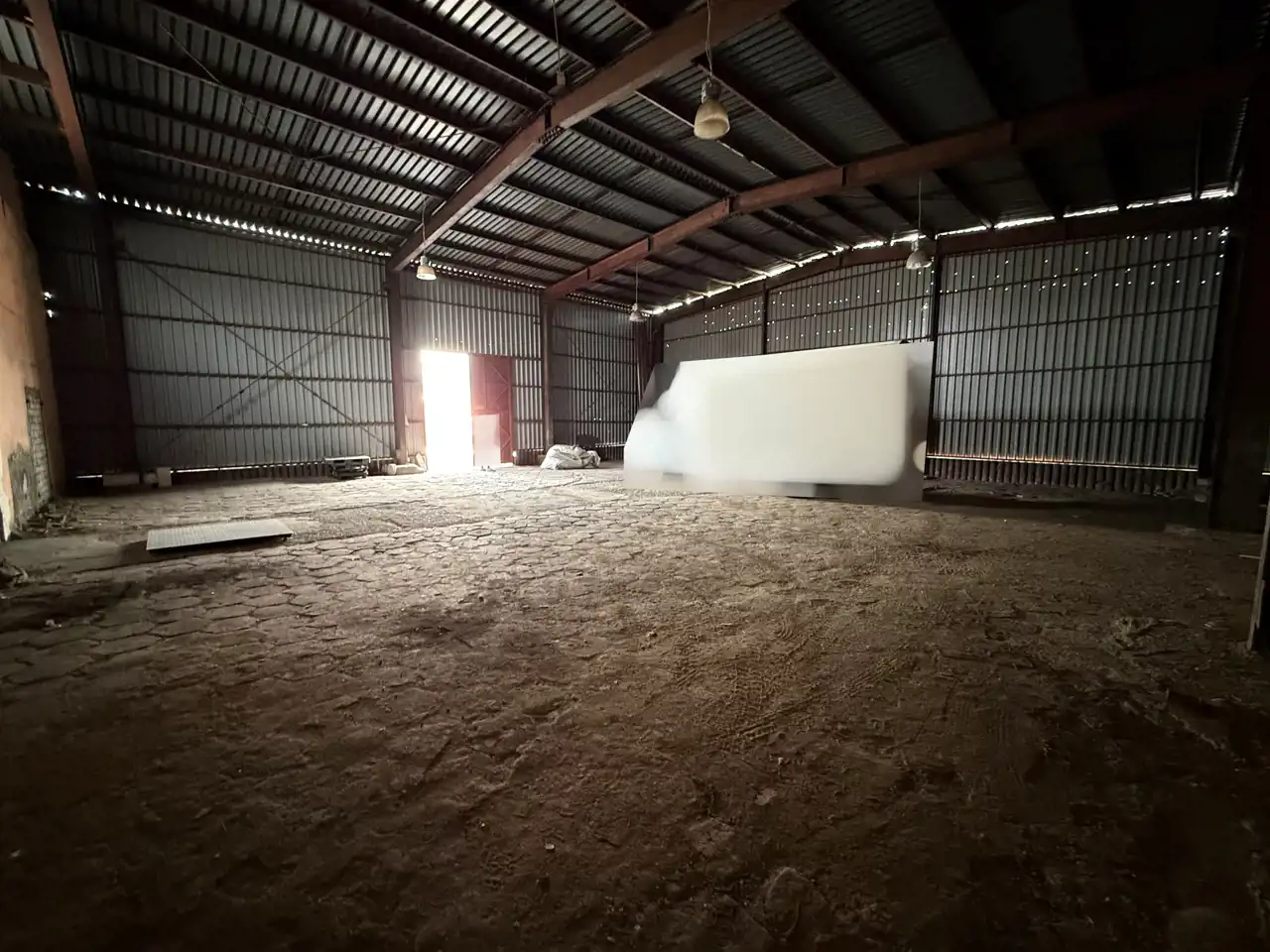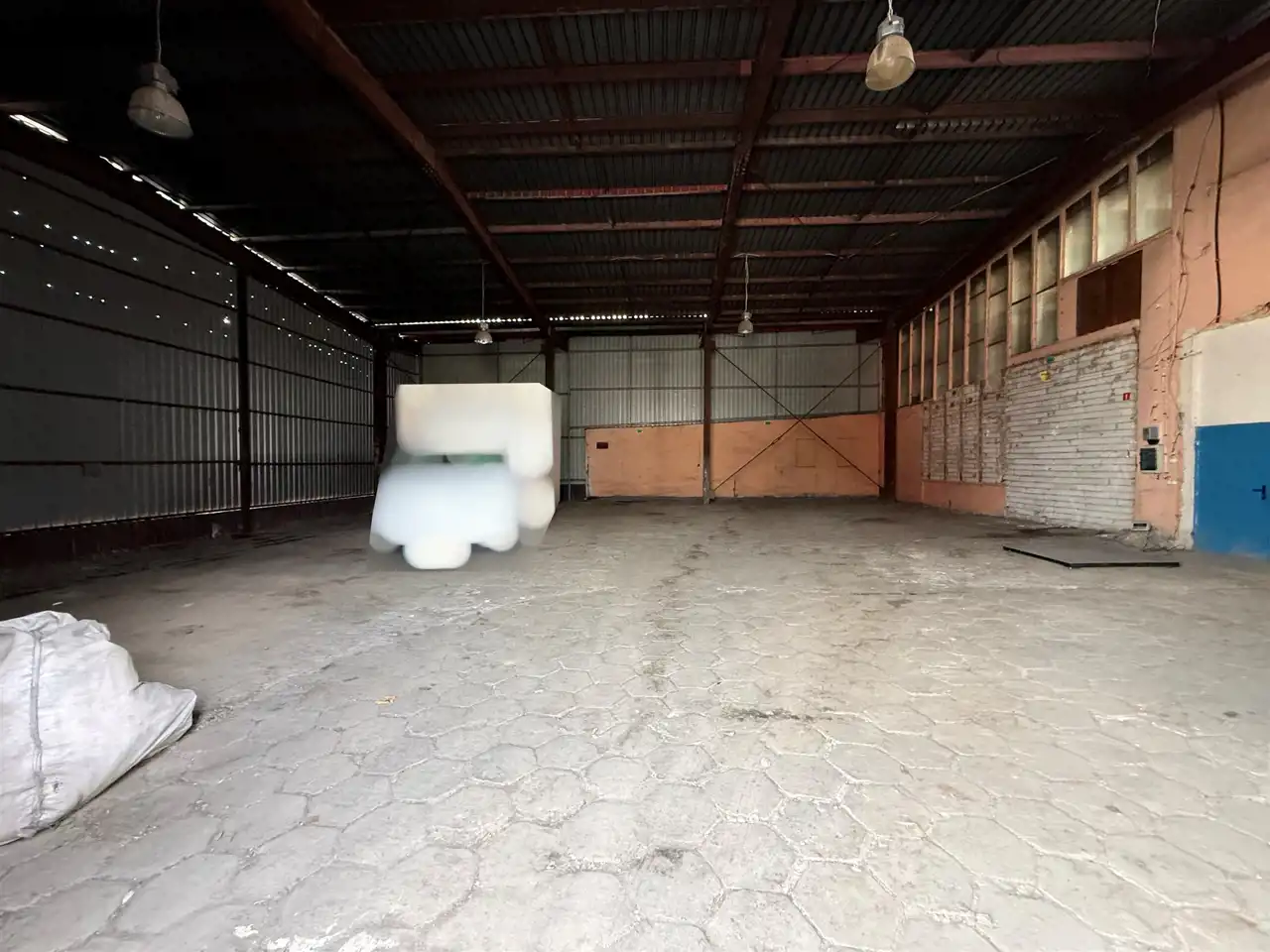 Hala o konstrukcji stalowej z obudową ścian z blachy trapezowej, posadzka z trylinki, nieogrzewana - powierzchnia około 400m2,