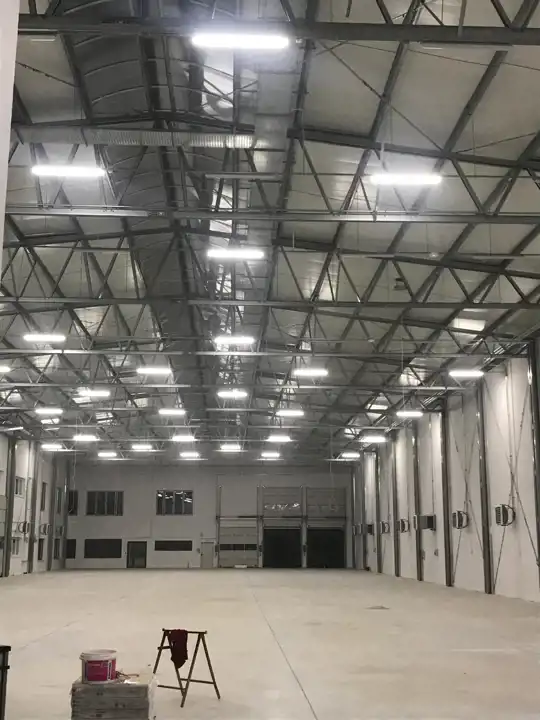 Hala ściany murowane docieplone (styropian 15 cm), dach płyta warstwowa (12 cm)
