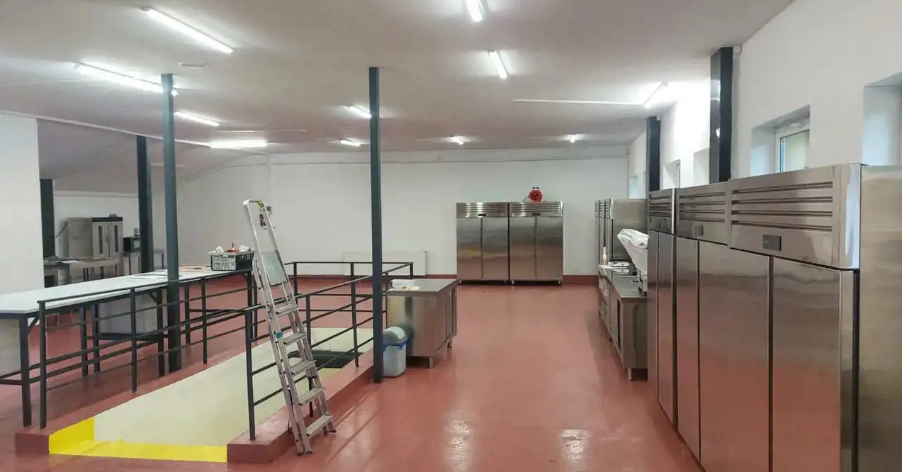 Obiekt został przygotowany do produkcji spożywczej (lub innej wyspecjalizowanej) i ma dodatkowo piwnicę o pow. 60 m², którą można wykorzystywać jako magazyn. Jest wydzielona powierzchnia biurowa i pełne zaplecze socjalne.